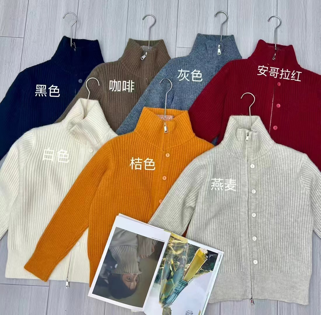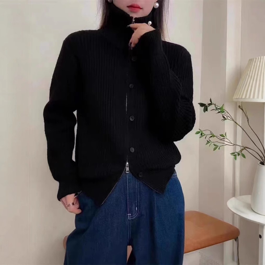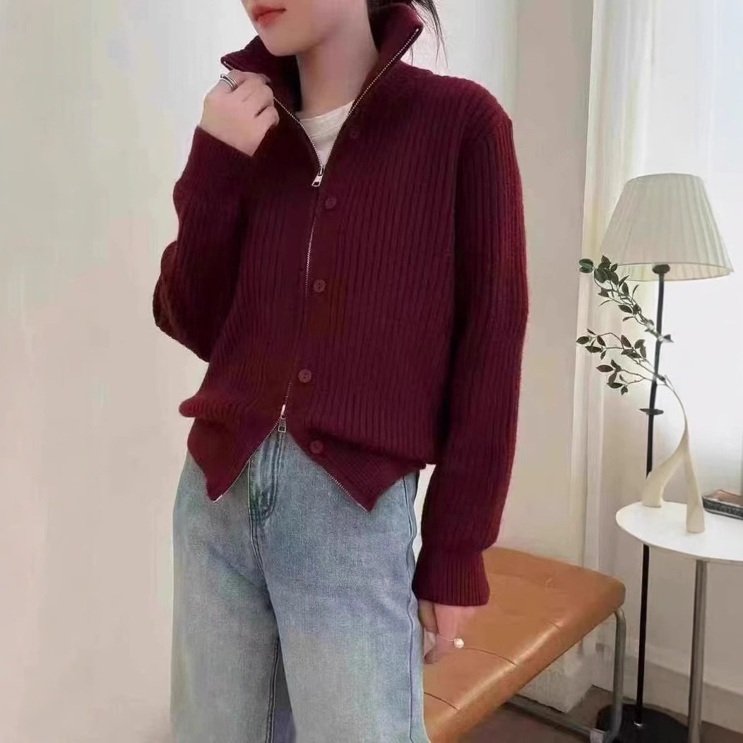 实拍秋冬季新款女装立领拉链单排扣针织开衫软糯设计感毛衣外套女