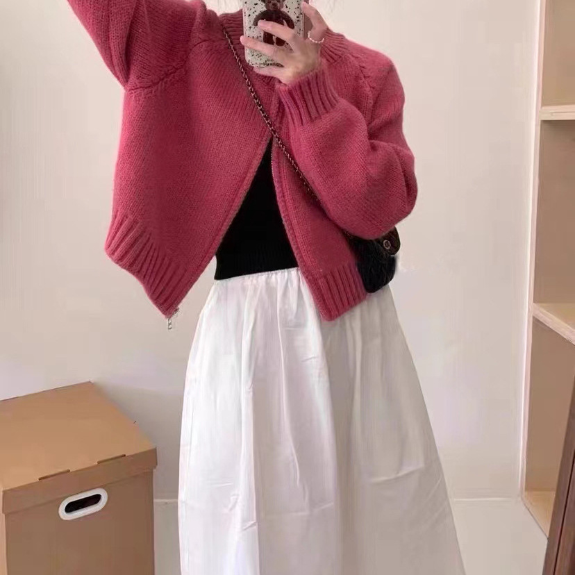 ラウンドネックショートカジュアルスタイルセータージャケット女性のための春 2025 韓国ジッパー無地カーディガントップソフトで多用途