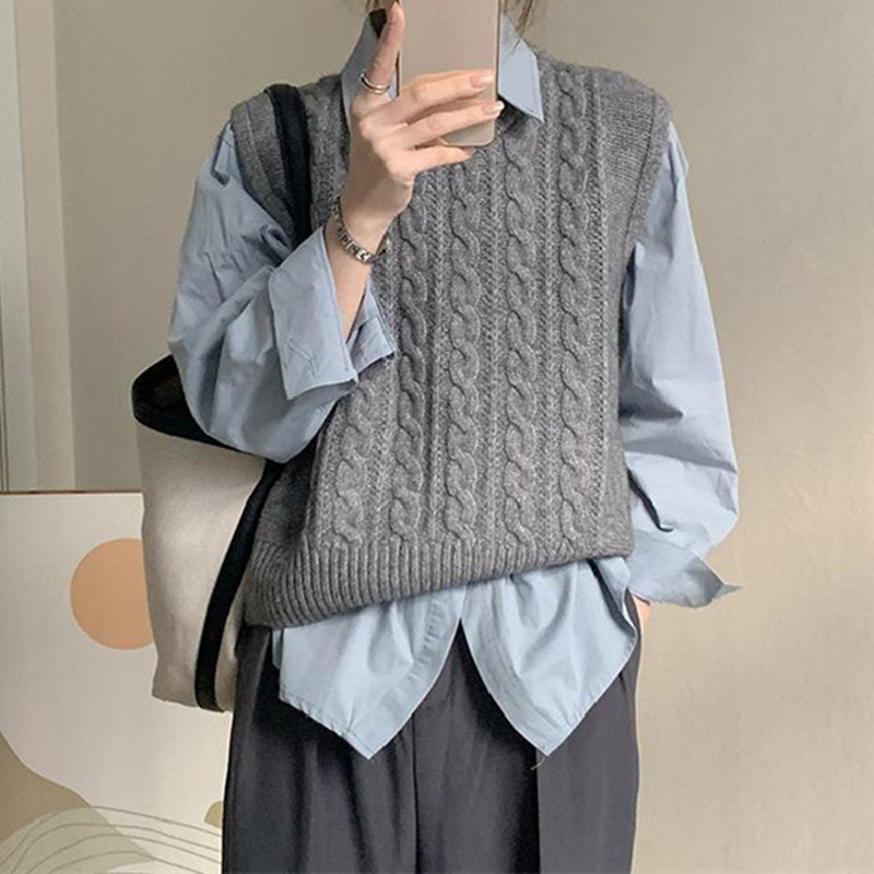 丸襟麻花馬甲ベスト女性2023春秋ゆるいファッションソフトモチモチ重ね着ニット上着女性モデル