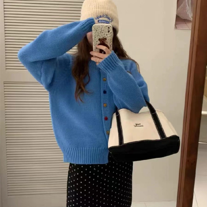 カラフルなボタンラウンドネックセーターレディース春の新作ゆったりと年齢を軽減するアウターウェアソフトワックスニットカーディガンジャケットセーター
