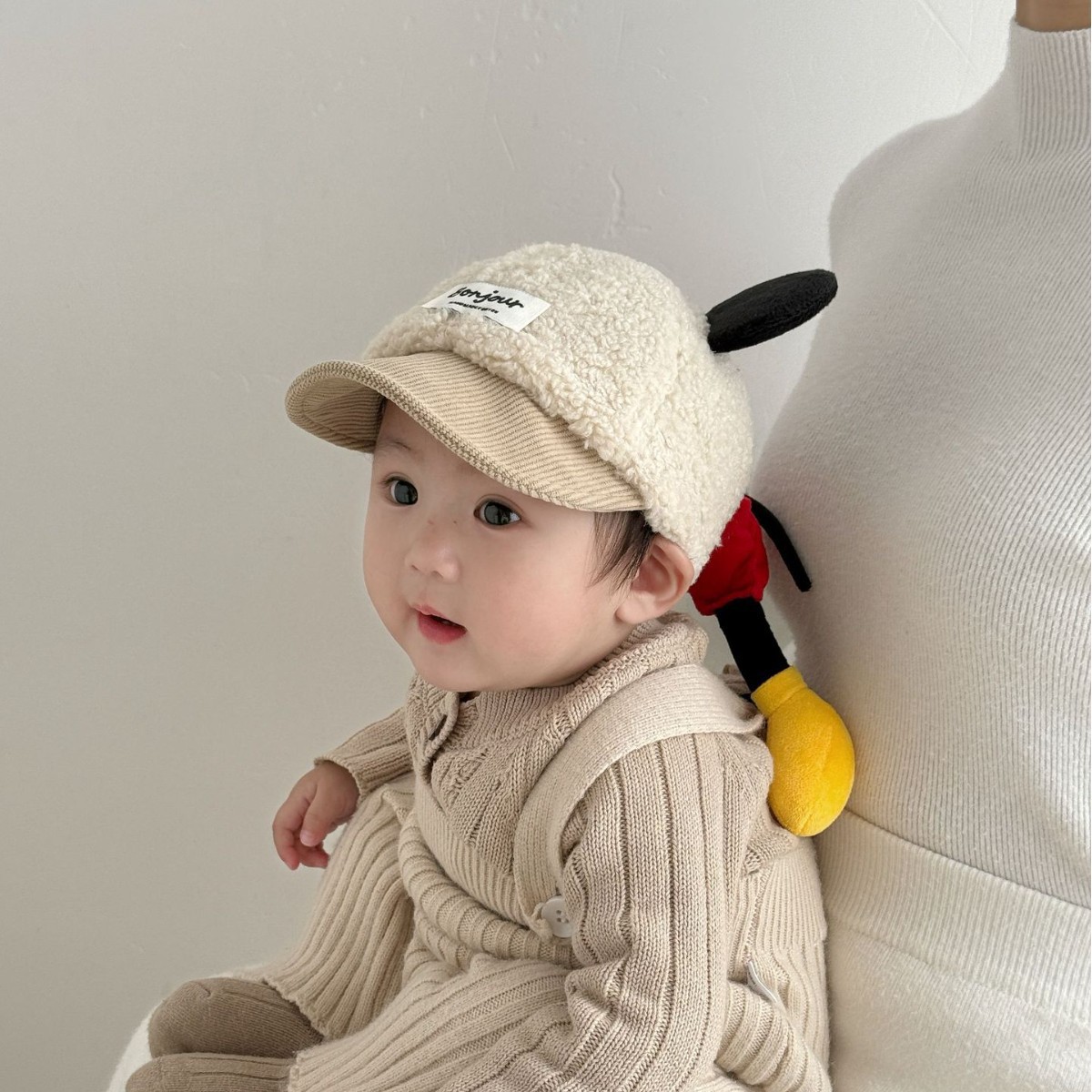 婴儿鸭舌帽超萌米奇耳朵保暖男童女童棒球帽秋冬户外防风宝宝帽子