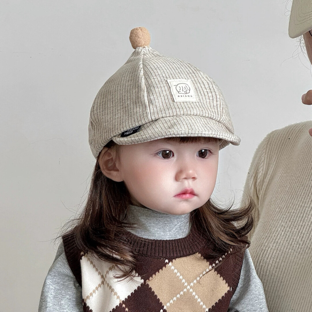 帽子秋冬防风韩版时尚百搭鸭舌帽男女宝宝出游条纹软檐球帽 · 灰
