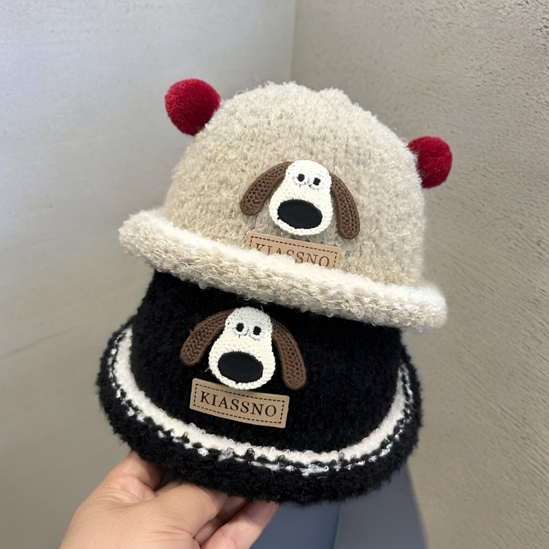 卡通风圆顶休闲风休闲无檐帽子冬季护耳帽宝宝毛绒秋冬