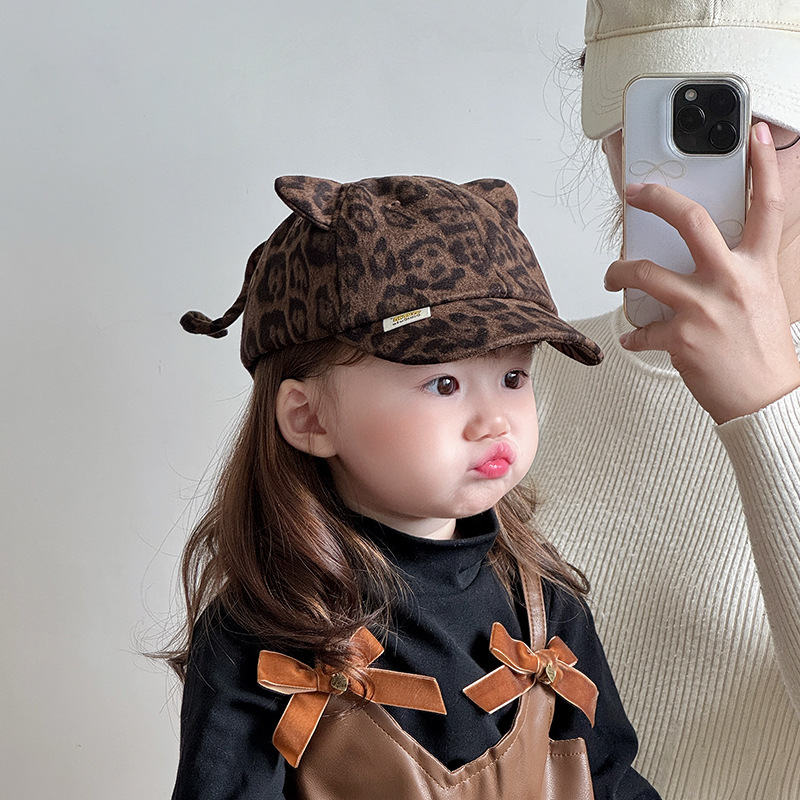 宝宝秋冬季洋气复古豹纹鸭舌帽男童女童潮酷时髦棒球帽韩版小孩帽