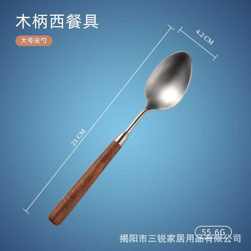 仕様 木製ハンドル付き中尖スプーン,木製ハンドル付きの大きな尖ったスプーン,木製ハンドル付き丸頭スプーン,木製ハンドルフォーク,木製ハンドル付きステーキナイフ