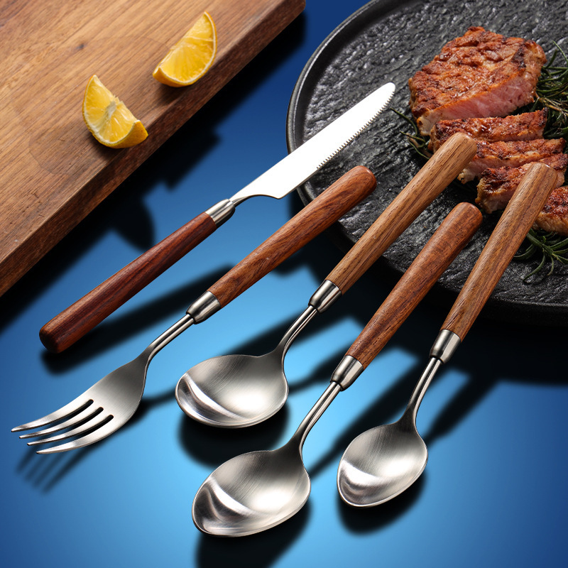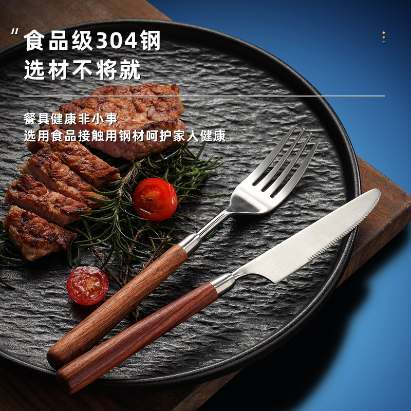 花梨木柄ナイフフォークスプーン304ステンレススプーン家庭用高颜値西食器ステーキフォークナイフセット