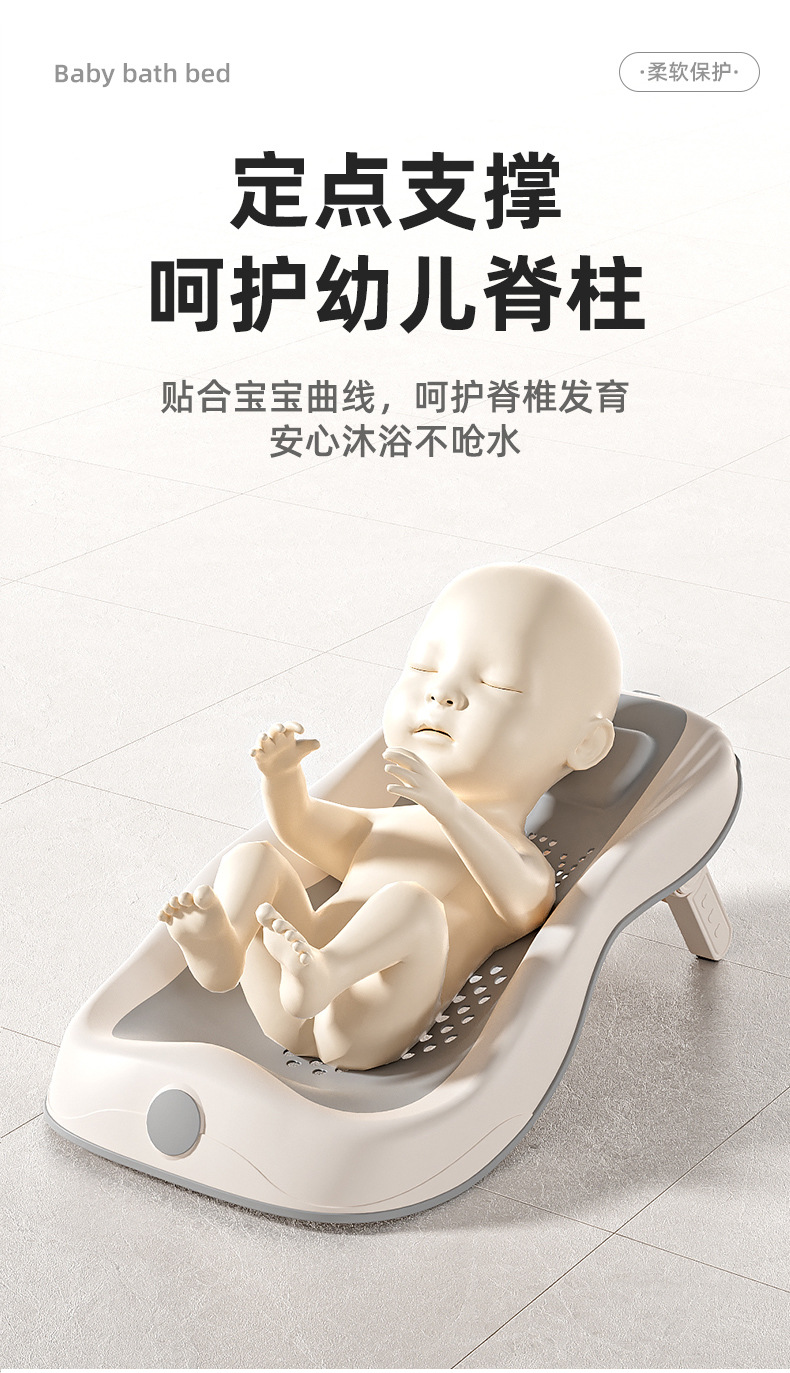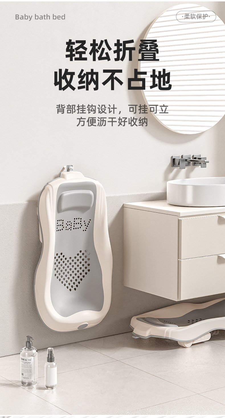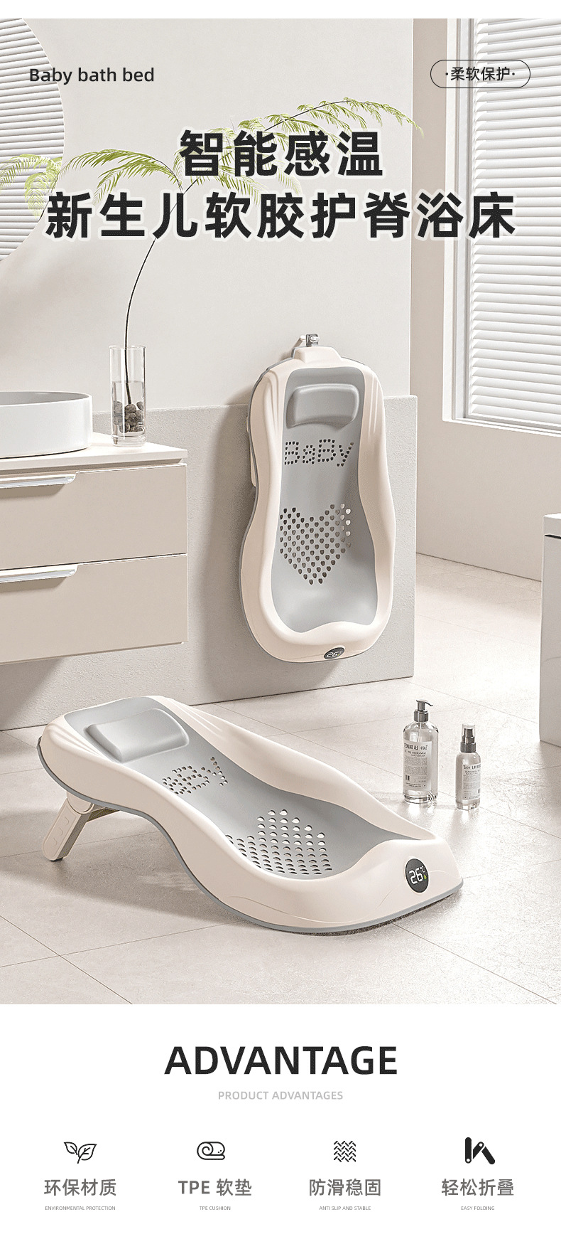 感温婴儿洗澡可坐躺浴床宝宝洗澡浴架新生儿洗屁屁浴盆坐托浴网