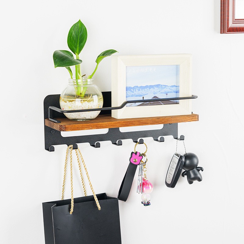 鉄と木の組み合わせ収納ラック玄関ドアキー収納オーガナイザー玄関壁掛けキーラック壁掛け収納ラック