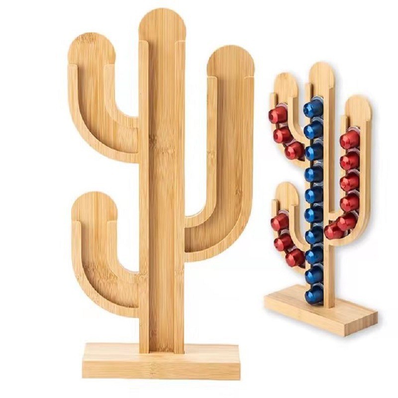 竹製コーヒーカプセル収納ラック サボテン型卓上収納ラック キッチンクリエイティブ収納ラック ディスプレイラック