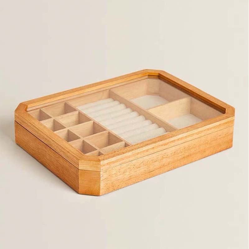 無垢材ジュエリーディスプレイボックスフリップトップネックレスジュエリー収納ボックス八角形透明カバージュエリーボックス中国風の木箱