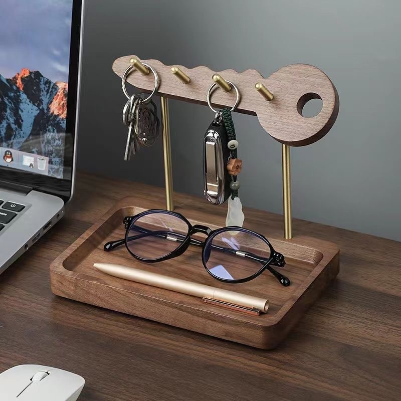無垢材玄関ドアキー収納ラック玄関キー型メガネトレイ多機能収納トレイ装飾収納ラック