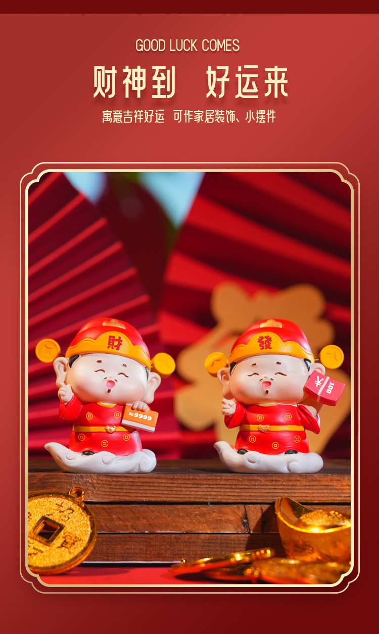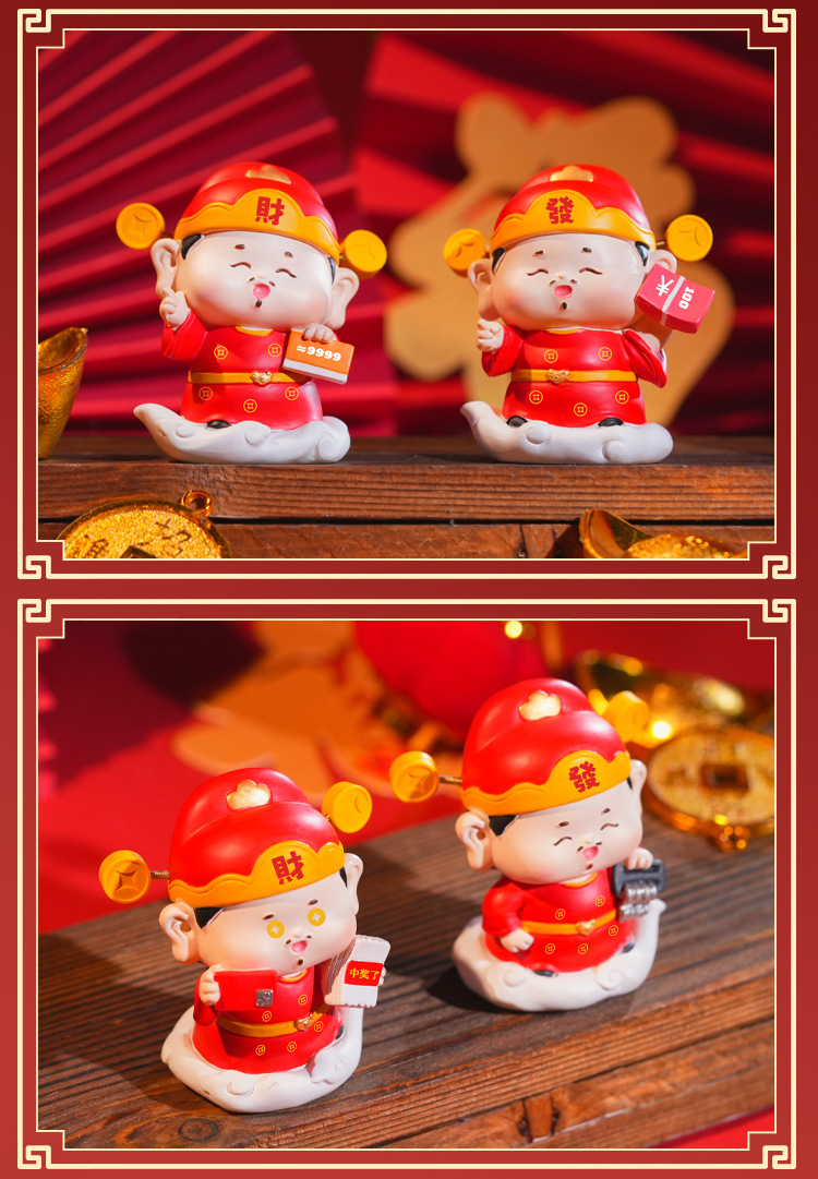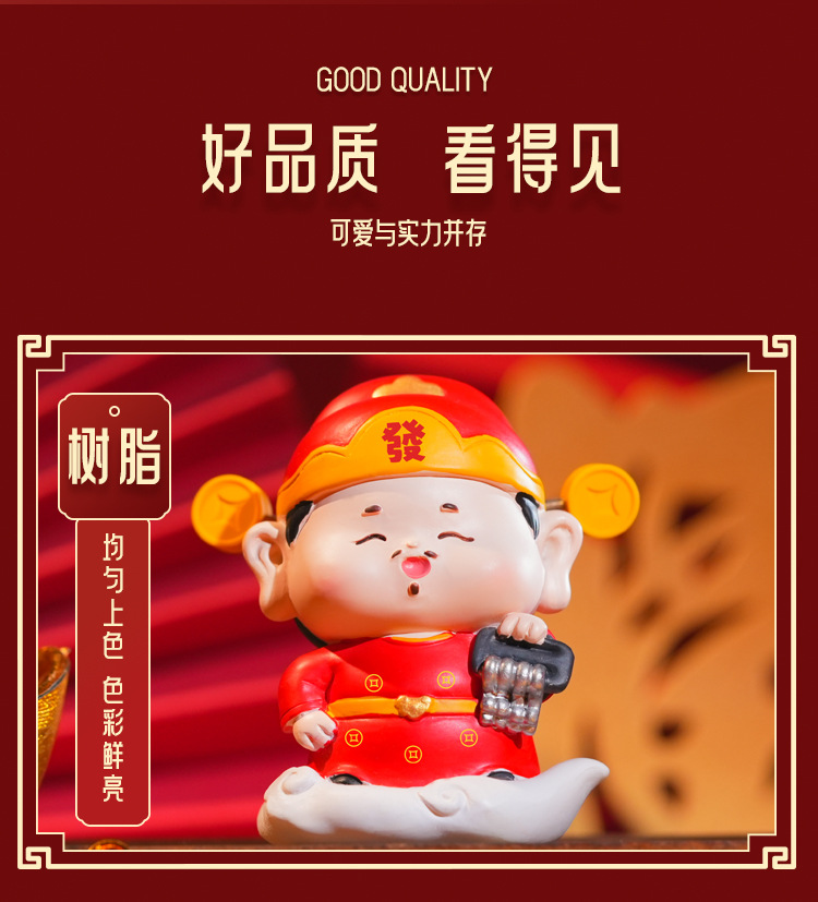 かわいい財神爷は正月に幸運に金持ちになったデスクトップオフィスの小さな置物の招財装飾品樹脂工芸品
