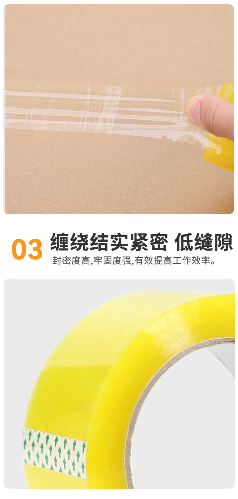 透明テープ一箱、大巻、米黄色テープ、宅配梱包用シールテープ、物流用シールテープ、電動商取引用シールテープ