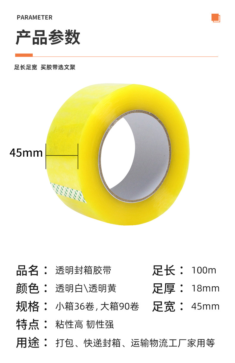 卸売り4.5cm幅封箱テープ宅配便包装テープ封口包装テープ大巻き透明テープ箱