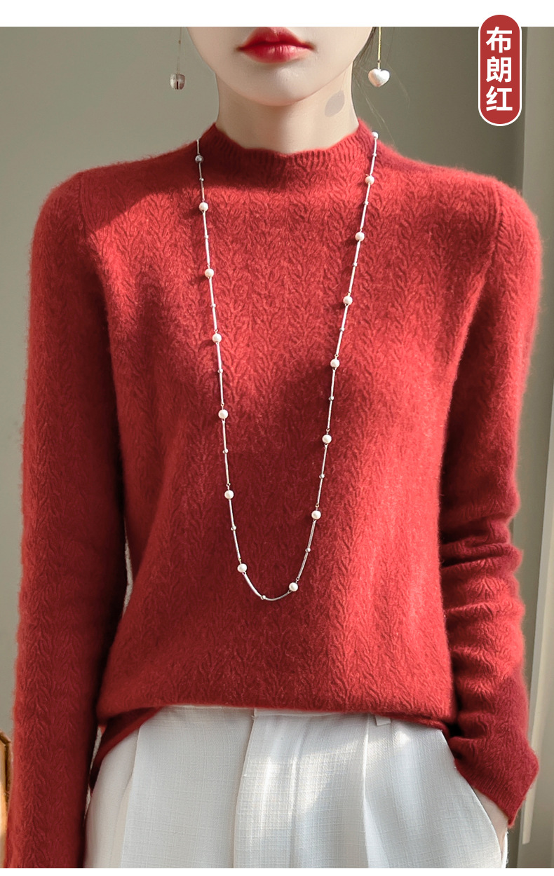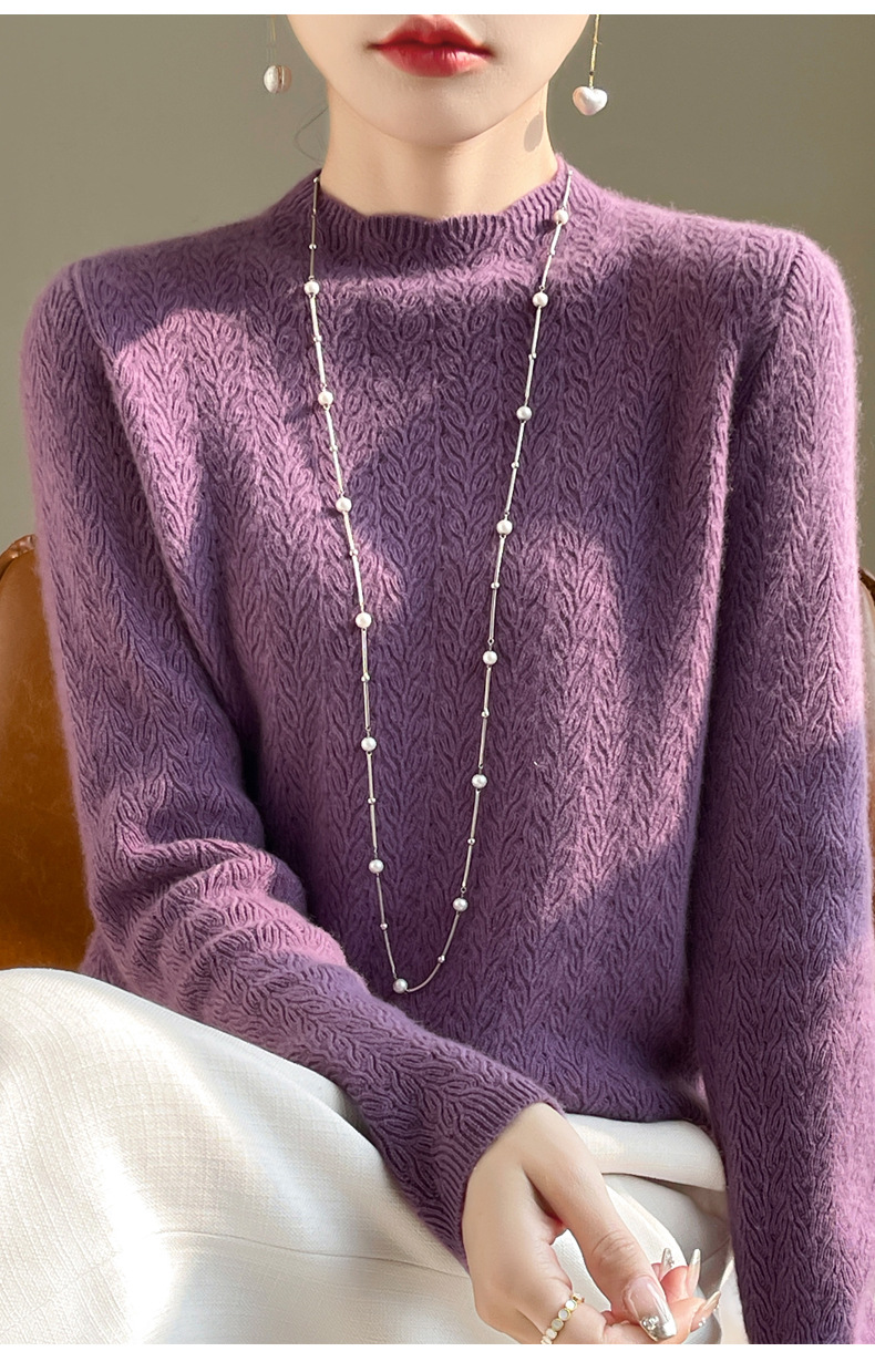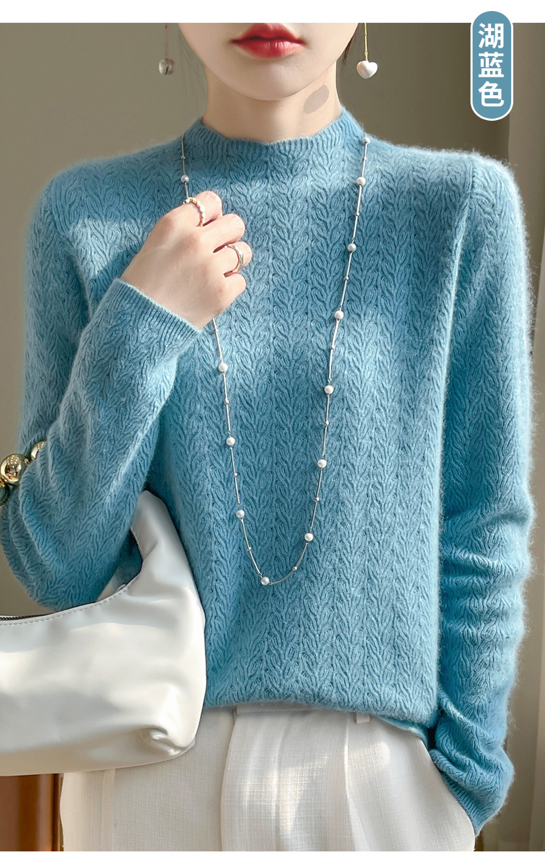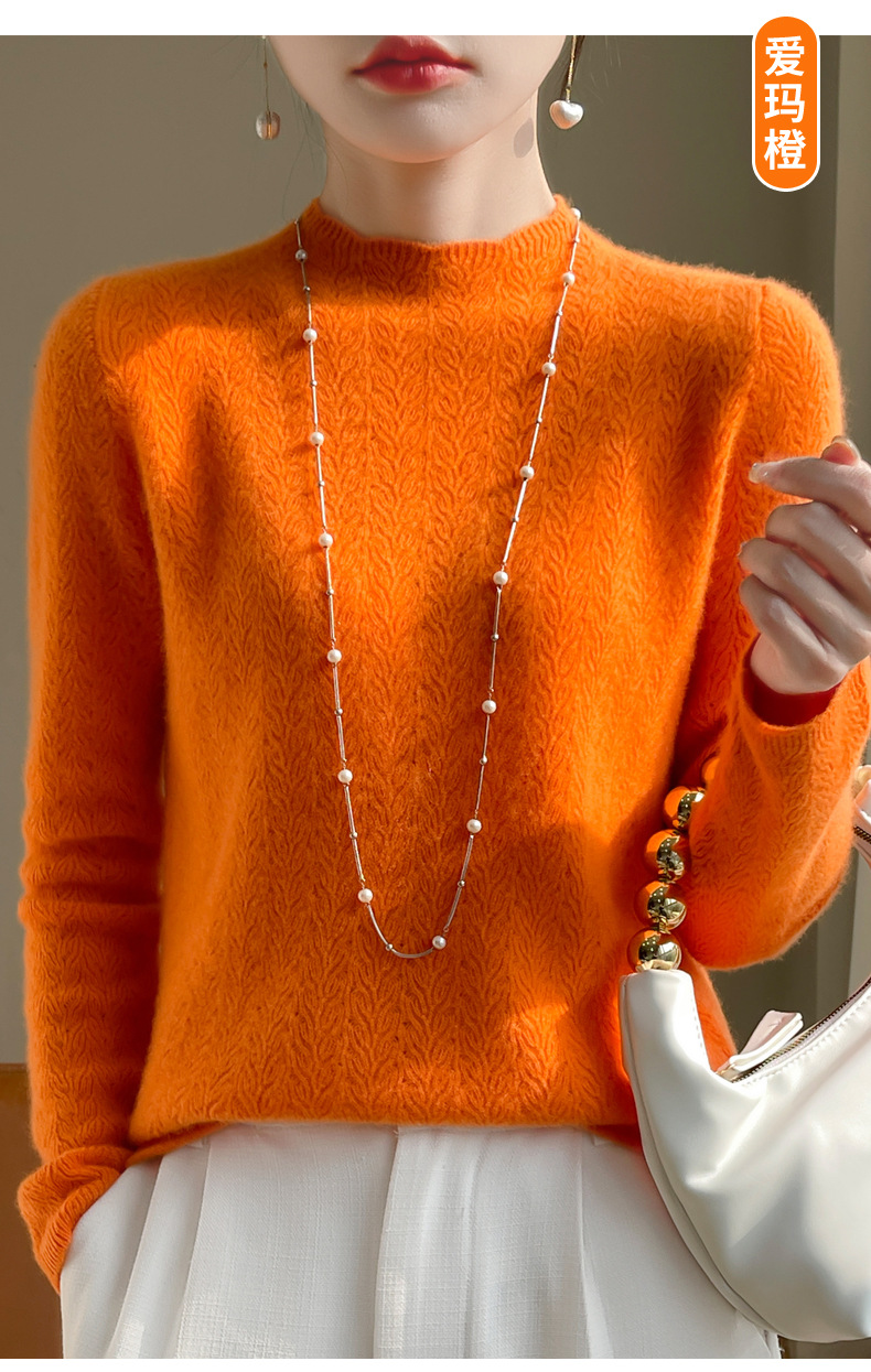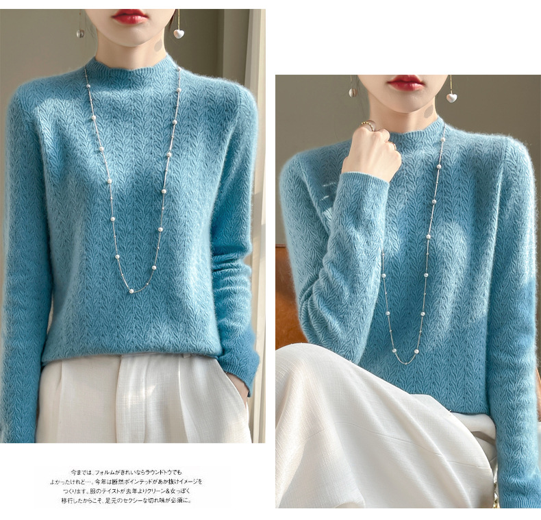100純ウールの半高襟の透かし編みの底のシャツの女性の2024新型の洋気の婦人服の秋冬の中でセーターを掛けます。