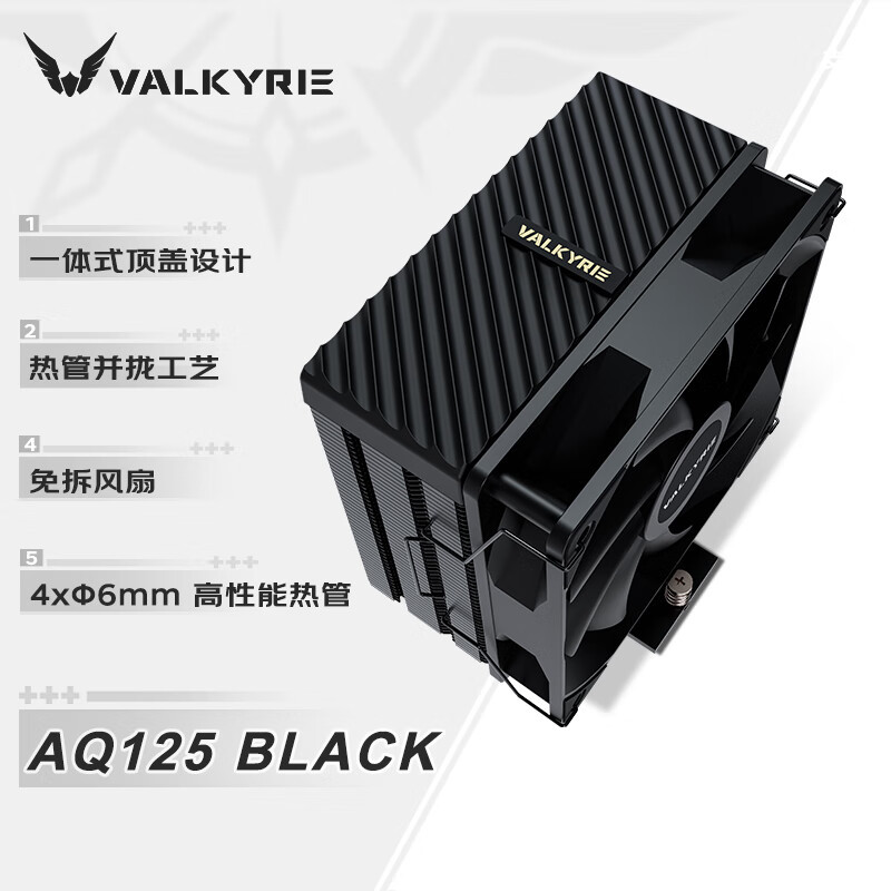 VK瓦尔基里AQ125BLACK散热器CPU风扇台式机AM5电脑四铜管塔式风冷