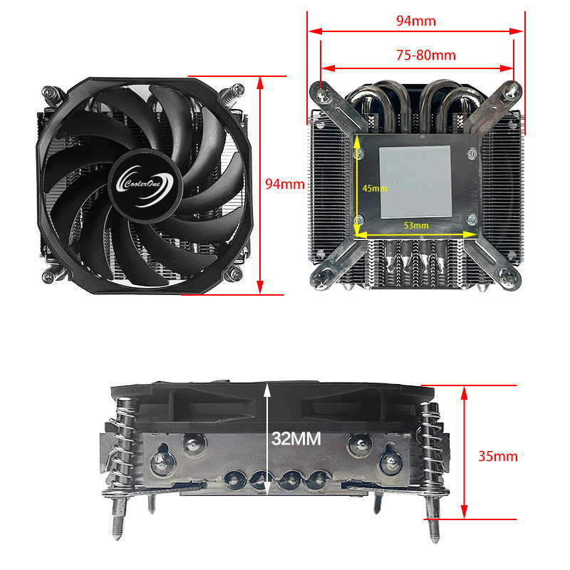 超薄型下圧ニッケルメッキ115X 1700 1366 ITXコンピューターCPUクーラー ケース32mm高さ 第12世代・第13世代対応