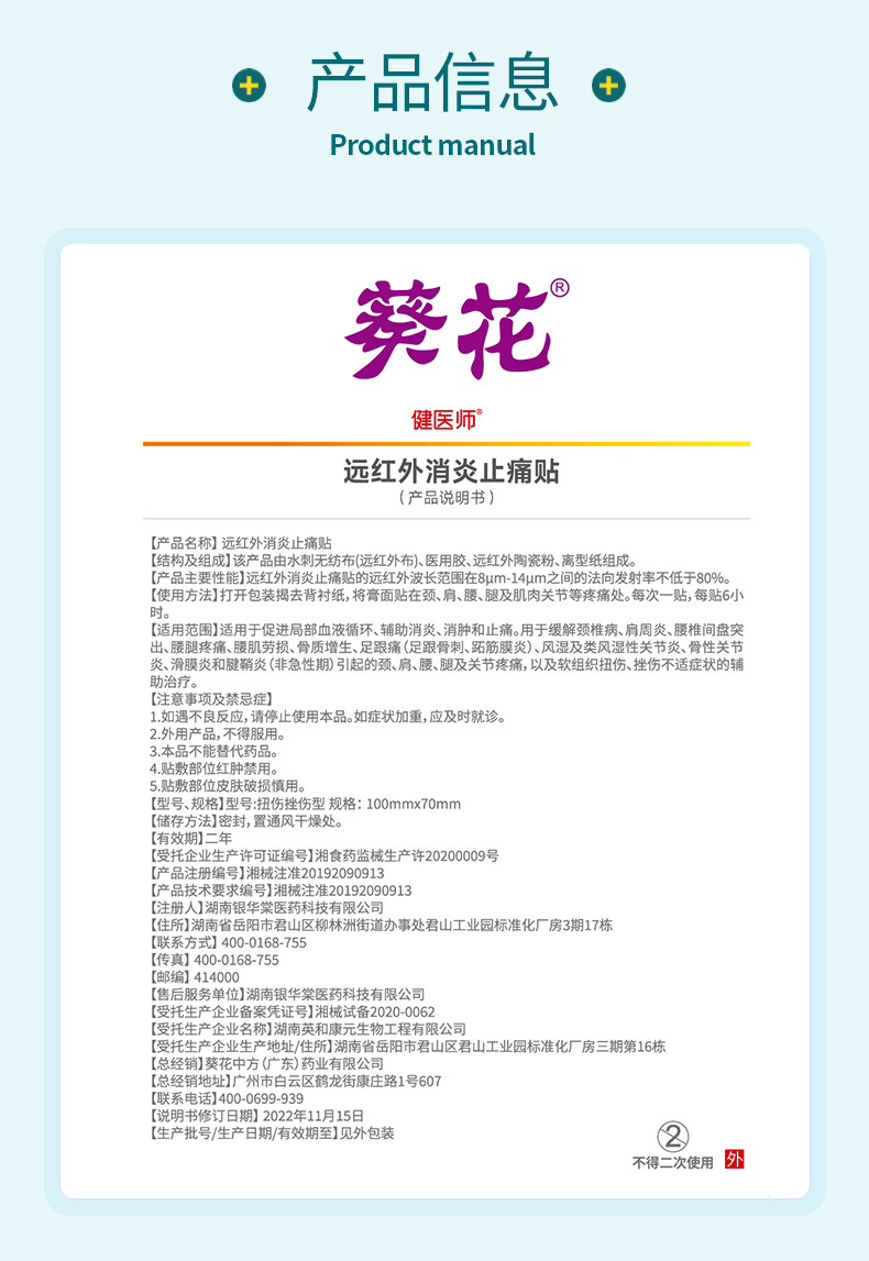 葵花远红外消炎肩周止痛型腰椎颈椎膝盖关节疼痛软组织损伤膏药贴