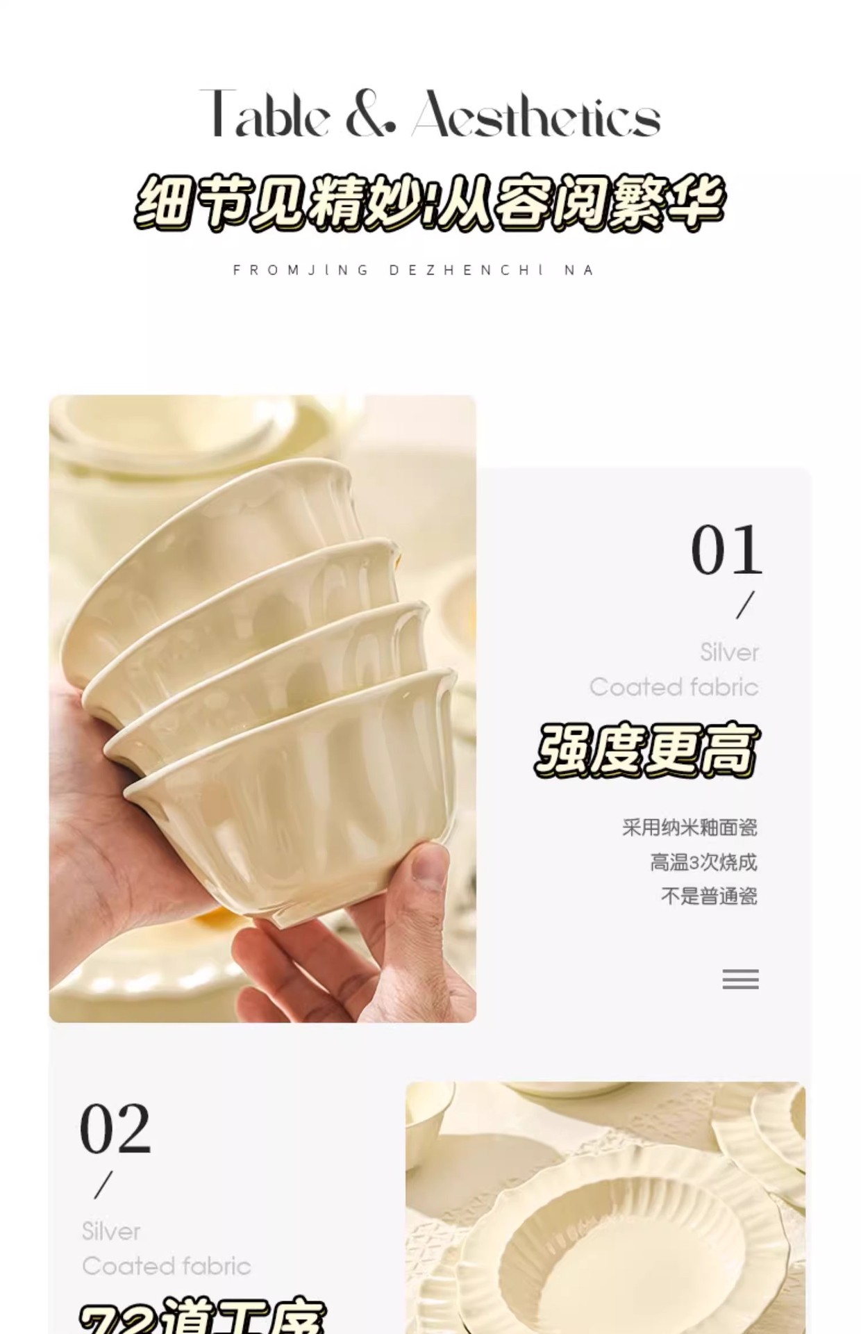 フランス式レリーフ碗皿セット陶磁器碗スープ碗感碗食器食器家庭用皿食器食器セット軽贅沢レース