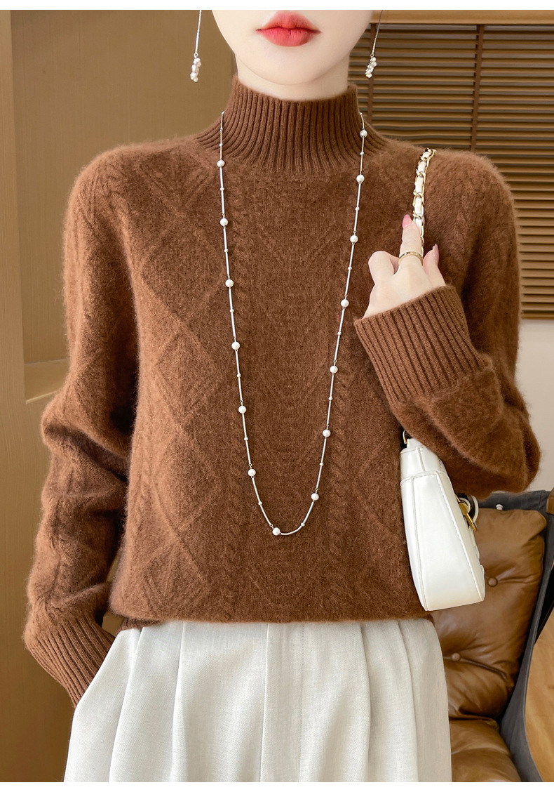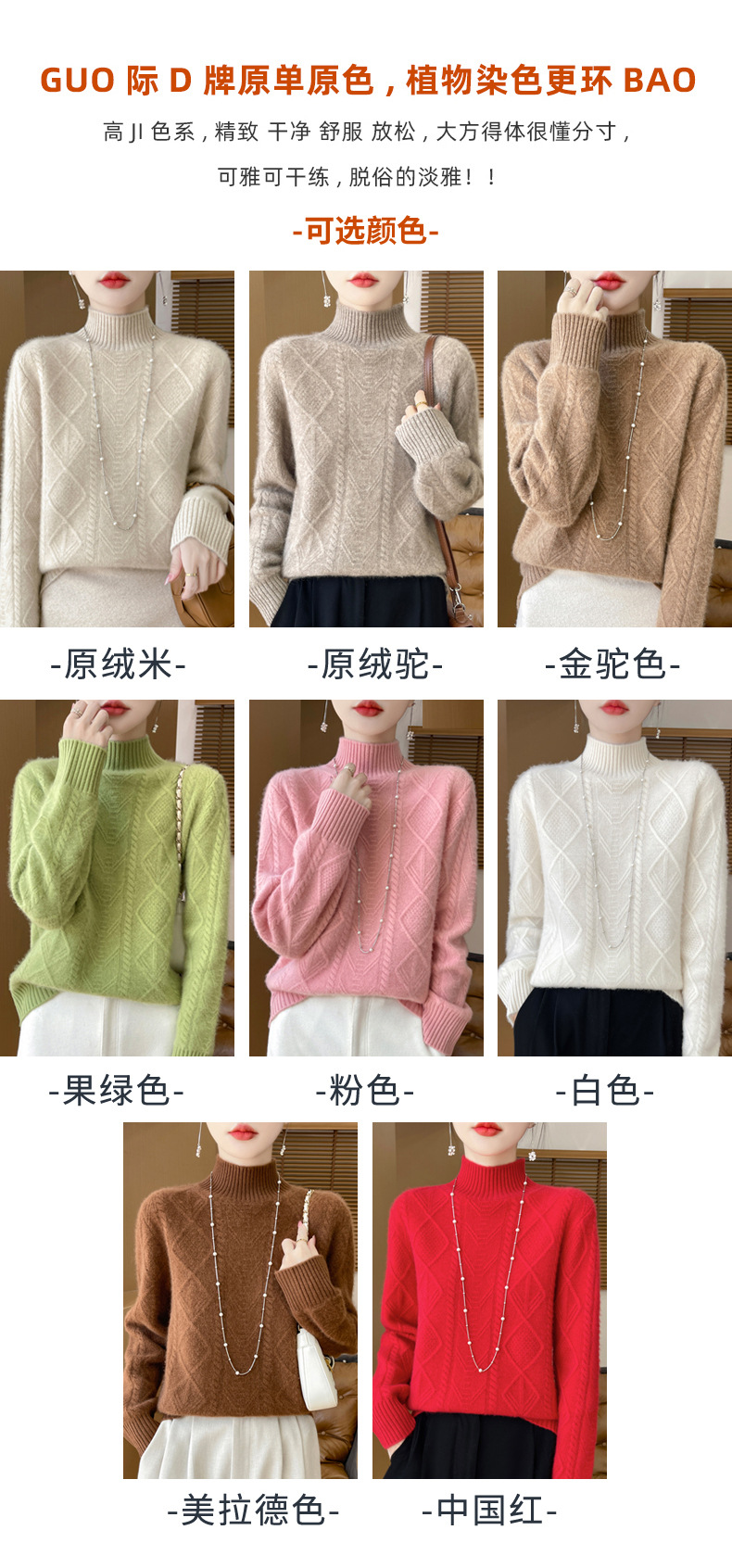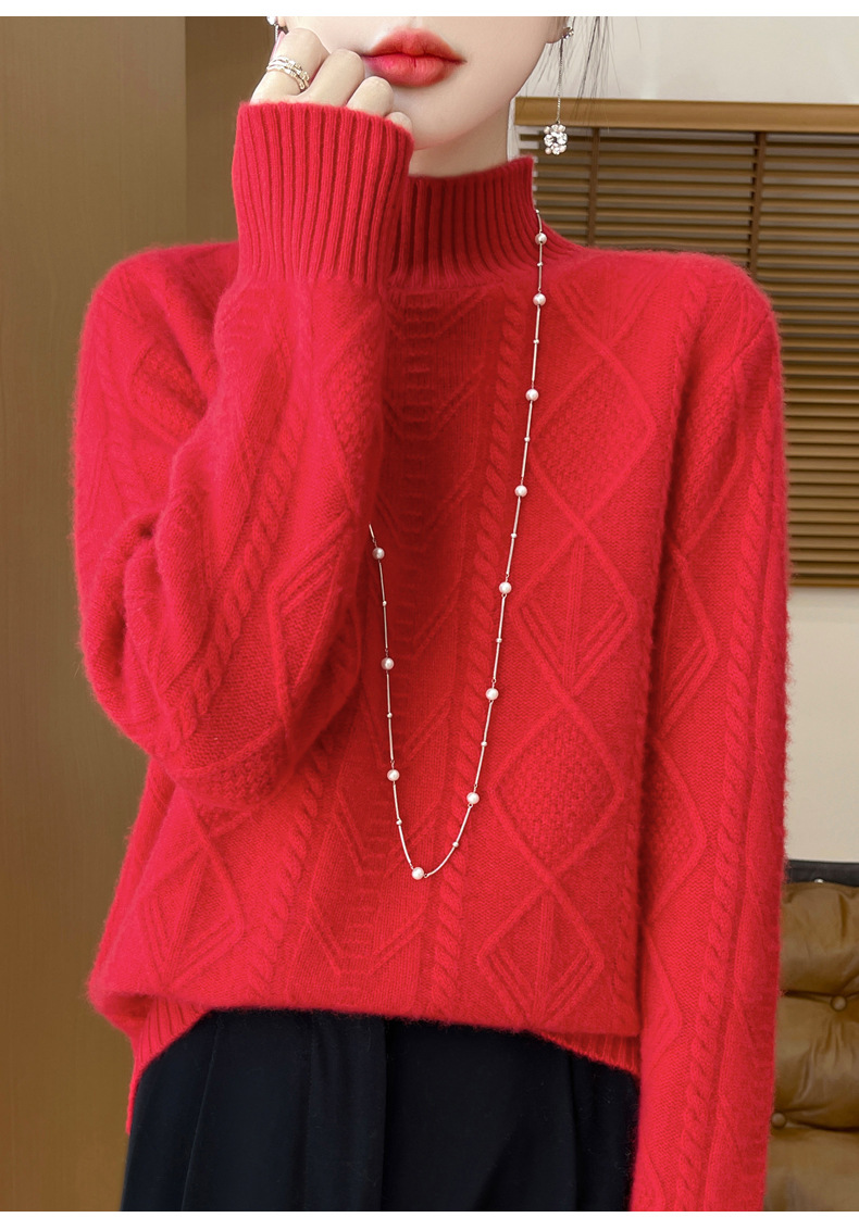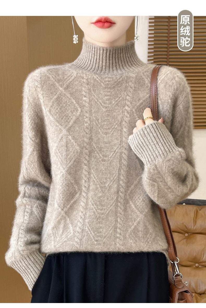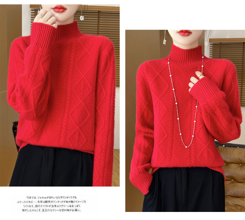 半高襟のひし形のツイスト100純ウールのセーターの女性2024秋冬の厚手の長袖のセーターの中にゆったりしています。