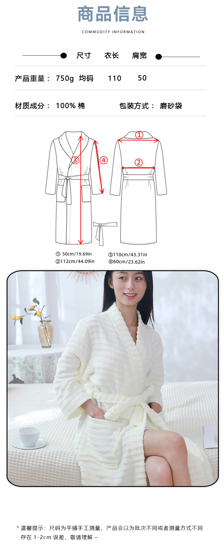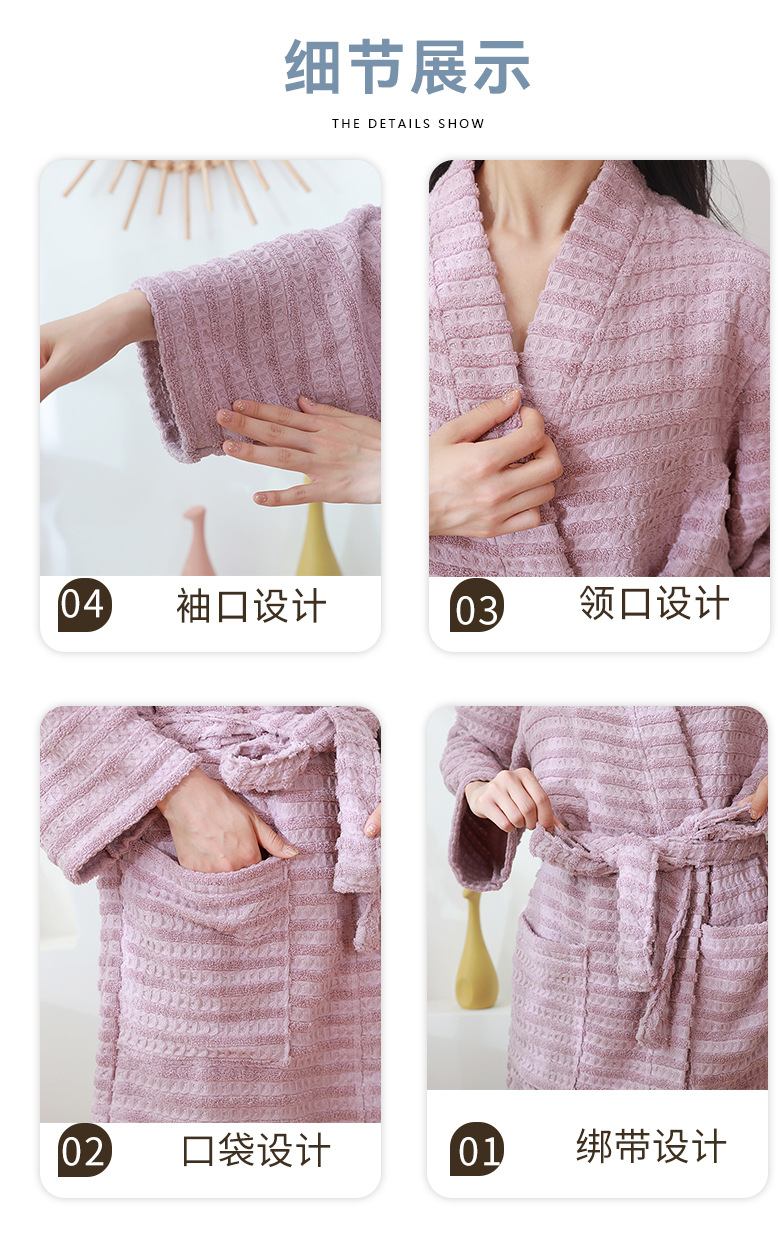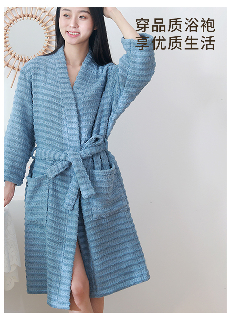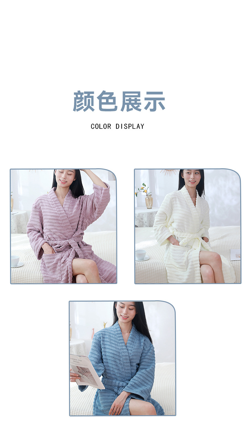 四季通用綿100%バスローブ、厚手、ゆったりサイズ、着物襟、毛織りとハニカム構造の組み合わせ、家庭用、男女兼用、カップル向け