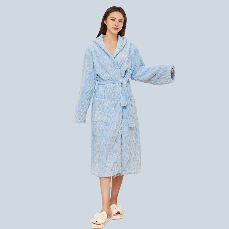 バスローブ コーラルベルベット 亀甲模様 バスローブ レディース パジャマ 大人用 長袖 フード付き ゆったり ホームウェア 越境卸売