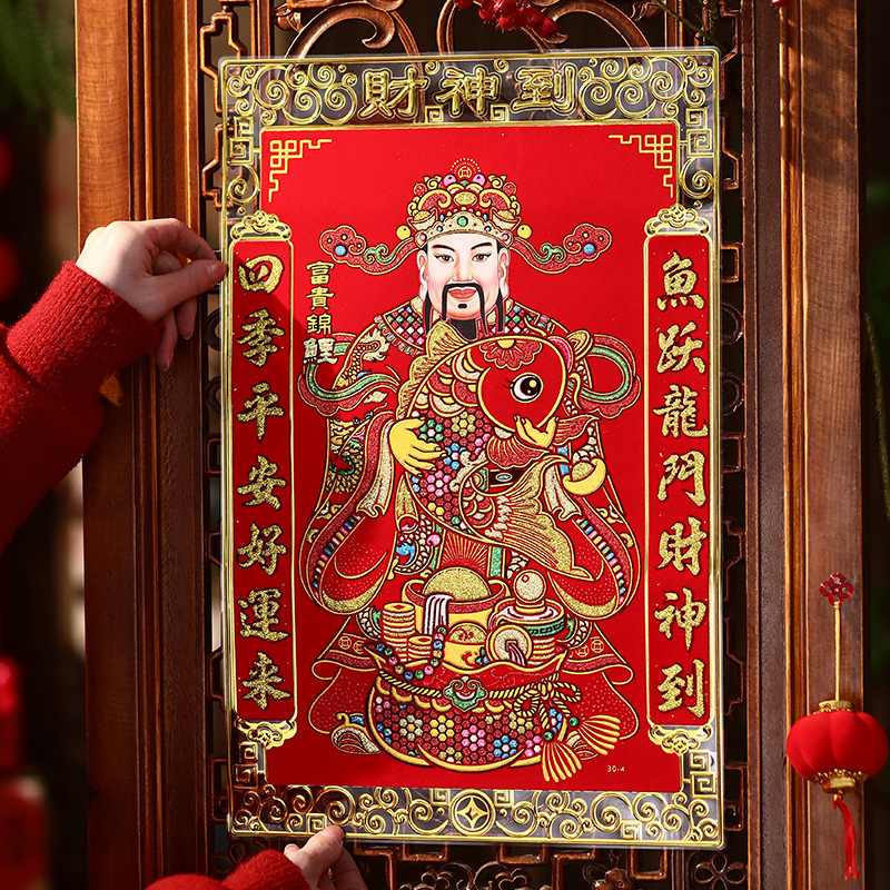 2026年新年馬年金箔財神像飾り春節用品財神到門神年画年物