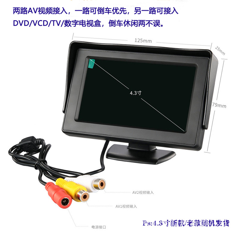 4.3インチデスクトップ車載ディスプレイ高精細日よけディスプレイ二路入力バック映像優先通用