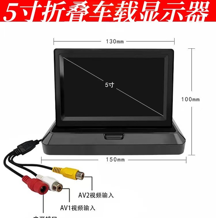 5インチ折りたたみhd車載ディスプレイ12-24v汎用2ウェイ入力バック映像優先モニター常時運転