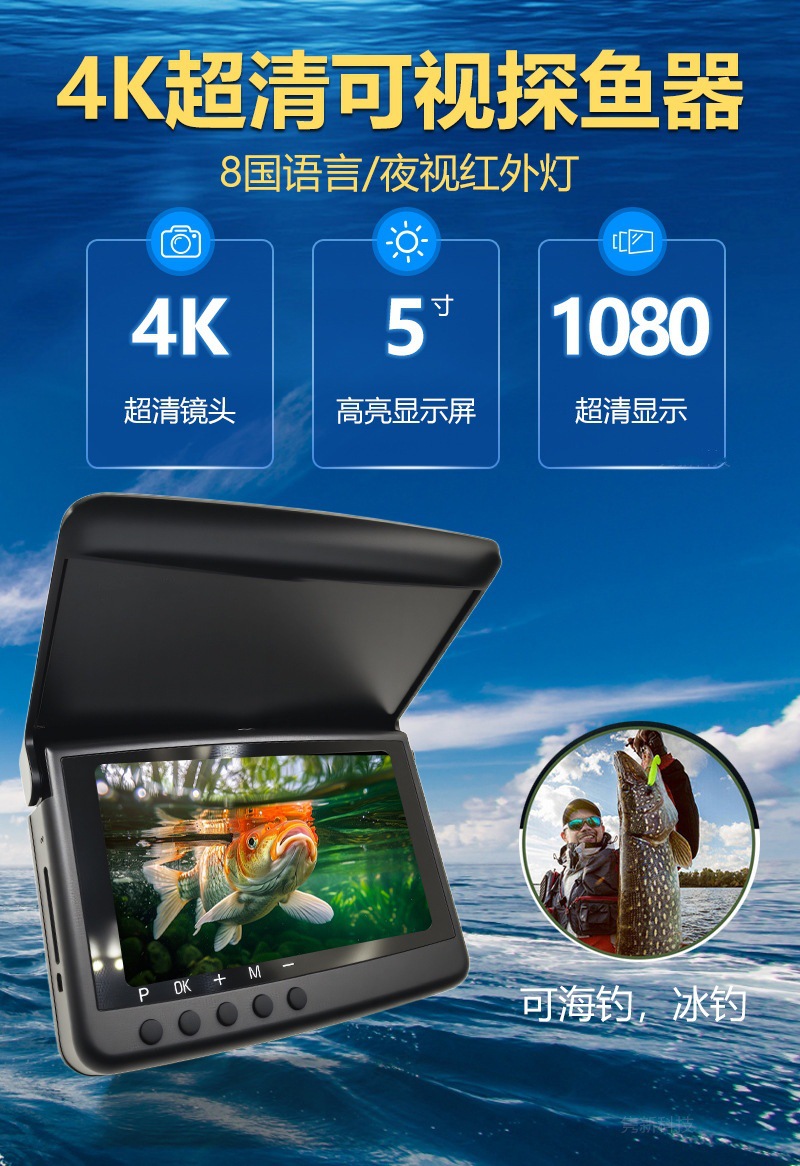 新型国境を越えた5インチ4k超清釣り水中探魚器水中カメラは氷釣り神器夜視を録画できる