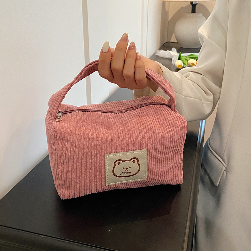 日系小熊化妆包女促销活动大容量轻便小众手拿包灯芯绒简约伴手礼