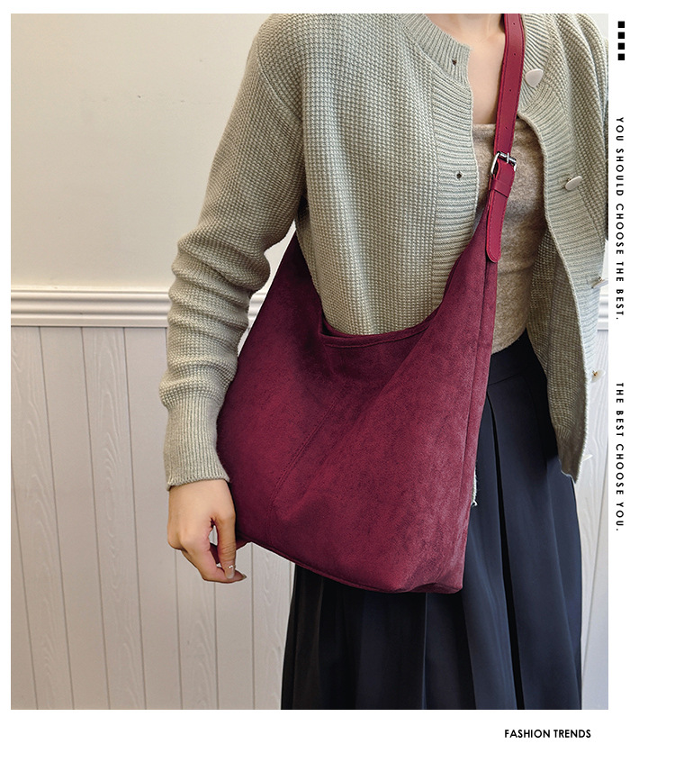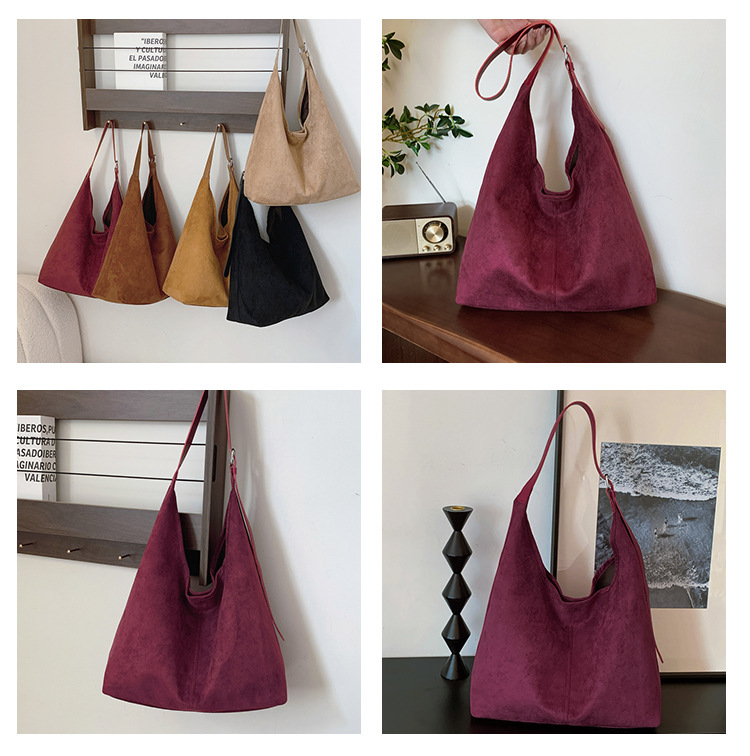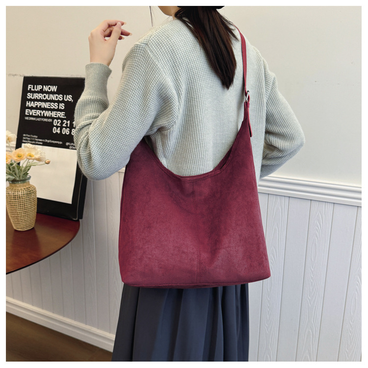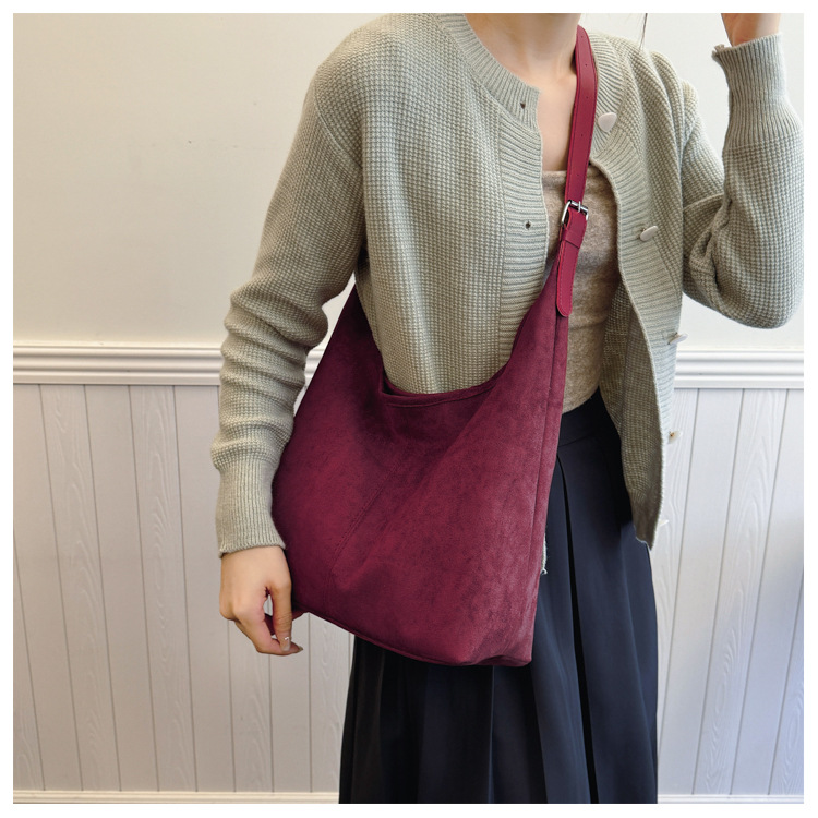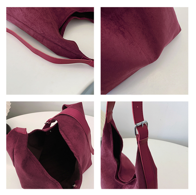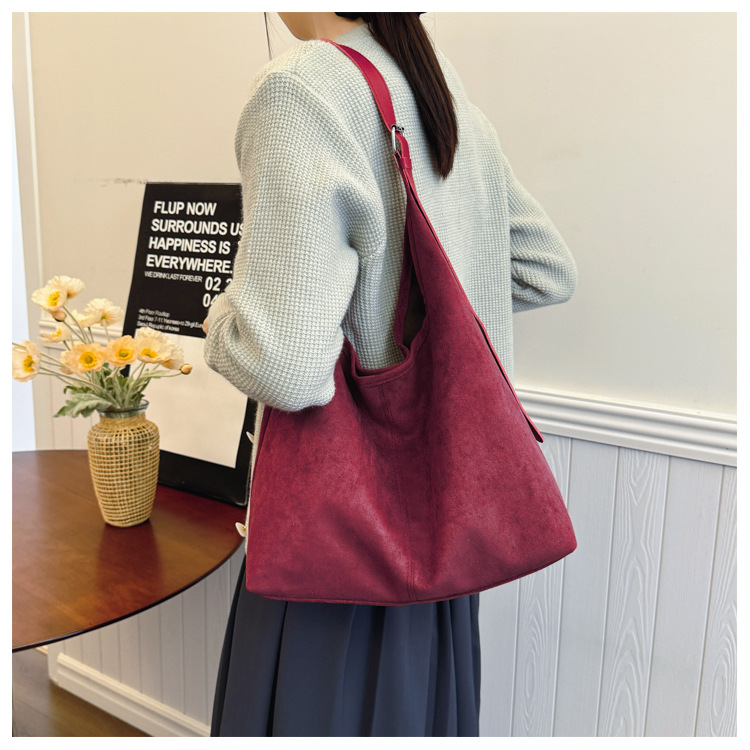 2 韓国のニッチな脇の下バッグ、カジュアルな大容量ショルダーバッグ、秋と冬の通勤トートバッグ、人気のアンコラレッドのショルダークロスボディバッグ