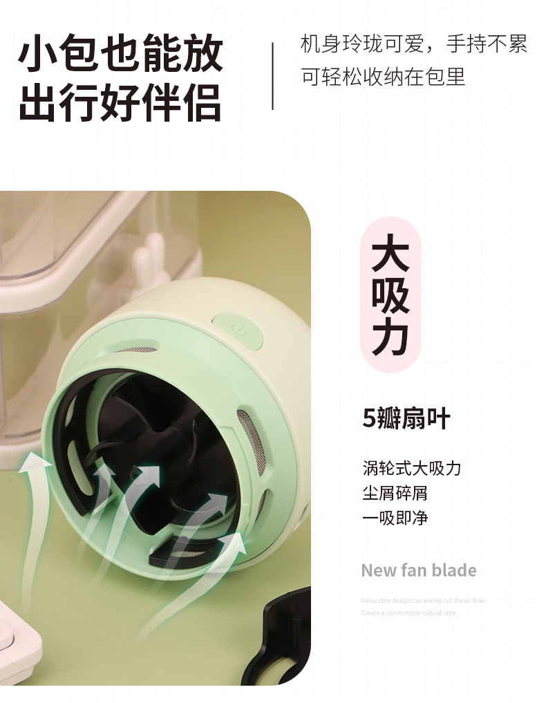 ワイヤレス充電式デスクトップ掃除機子供学生用電動デスクトップ消しゴム鉛筆くずタイプcインターフェース3速ギア