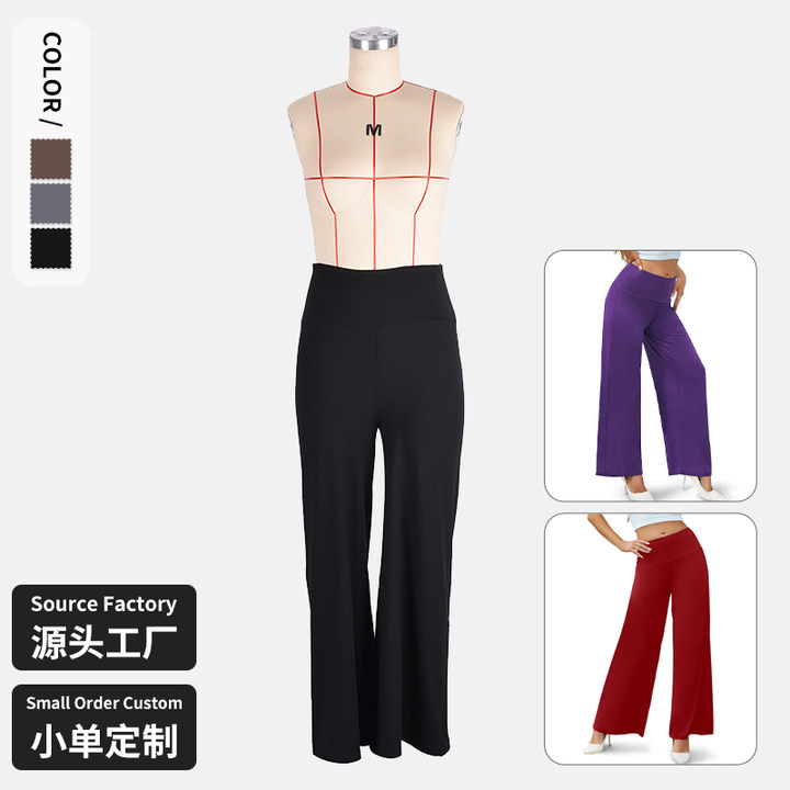 新型クロスボーダー人気女性カジュアルワイドパンツ欧米風弾力性高腰スポーツパンツ快適ヨガパンツ