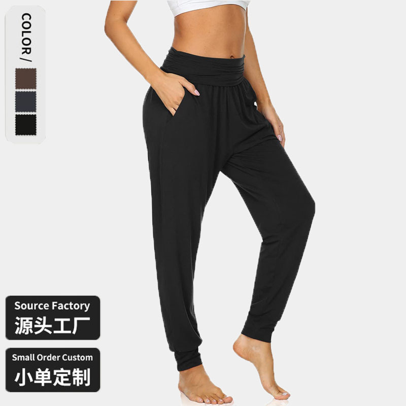 ヨーロッパとアメリカのスタイルのサイドにプリーツが入ったハイウエストで腹部を引き締め、足首が絞れるフィットネスパンツ、ポケット付き、ゆったりとした九分丈のカジュアルパンツ、スポーツパンツ