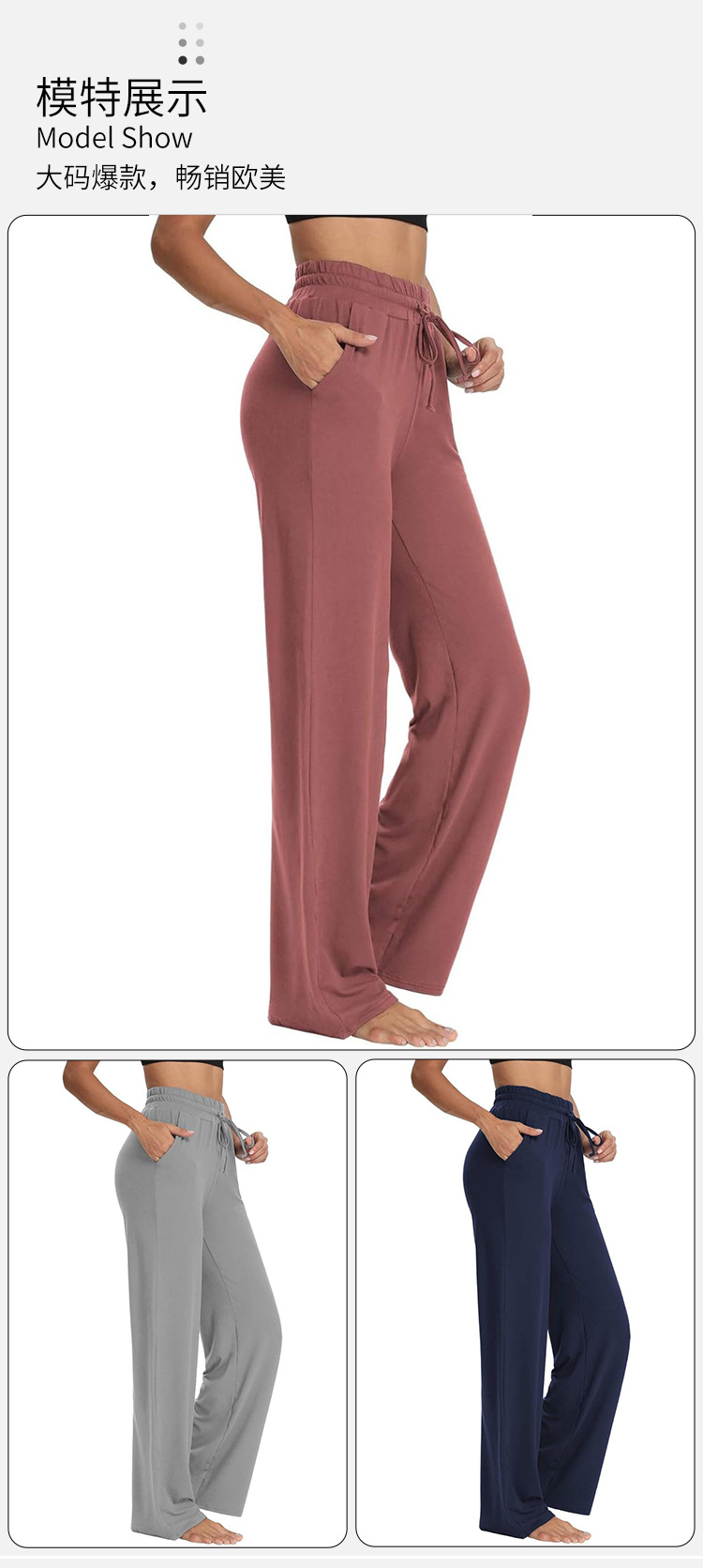 伸縮性ウエスト紐付きカジュアルパンツ、無地ゆったりヨガパンツ、ドレープ感のある着痩せ効果のあるストレートカジュアルワイドパンツ、高伸縮性