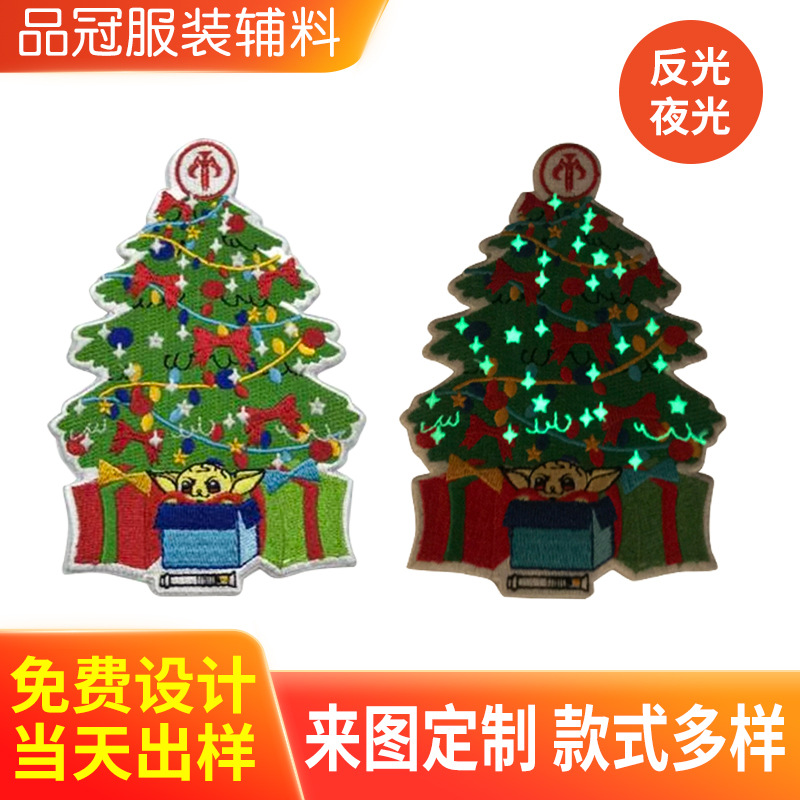 反射夜光効果刺繍は布刺繍を貼り付けます。