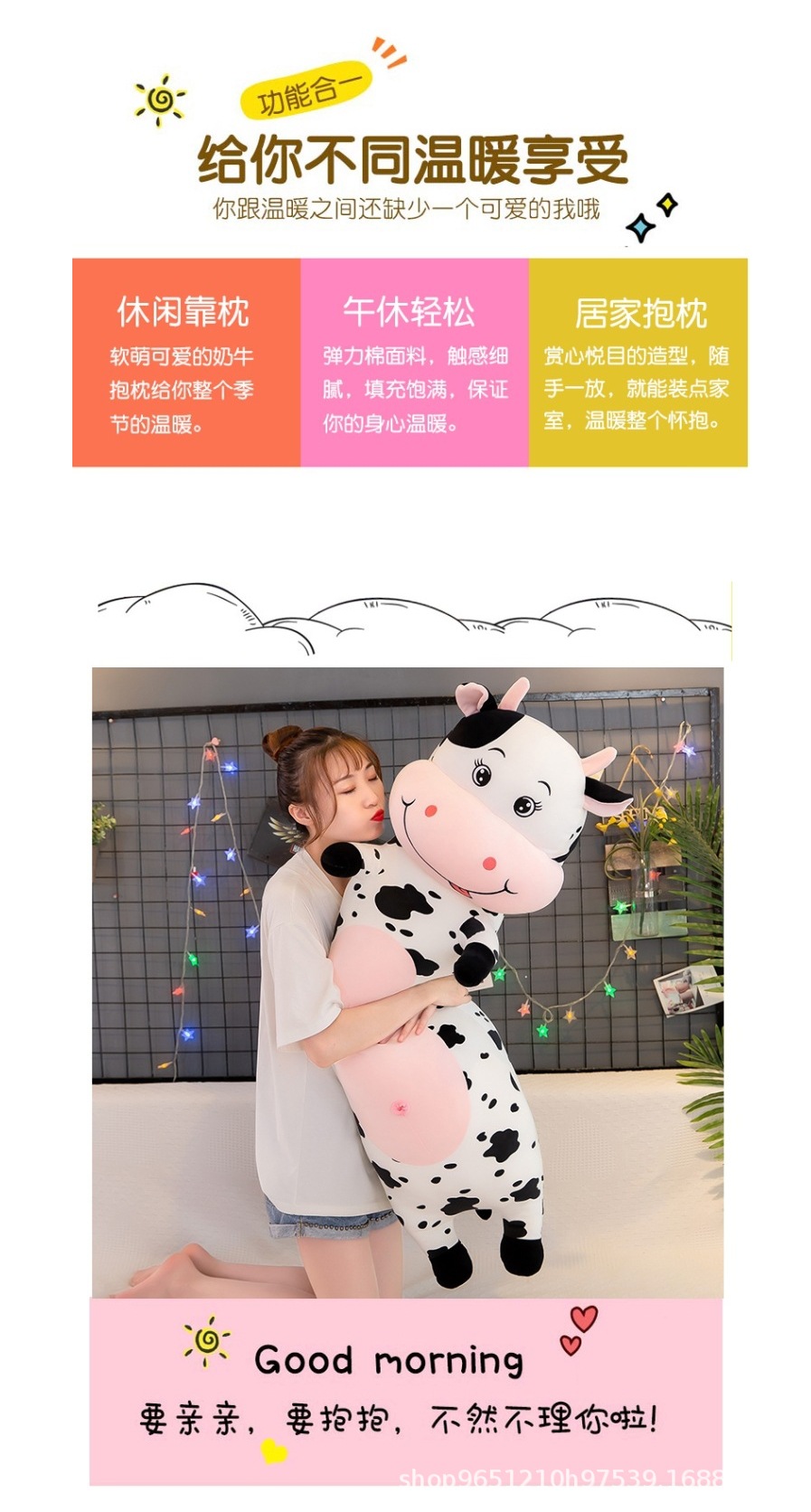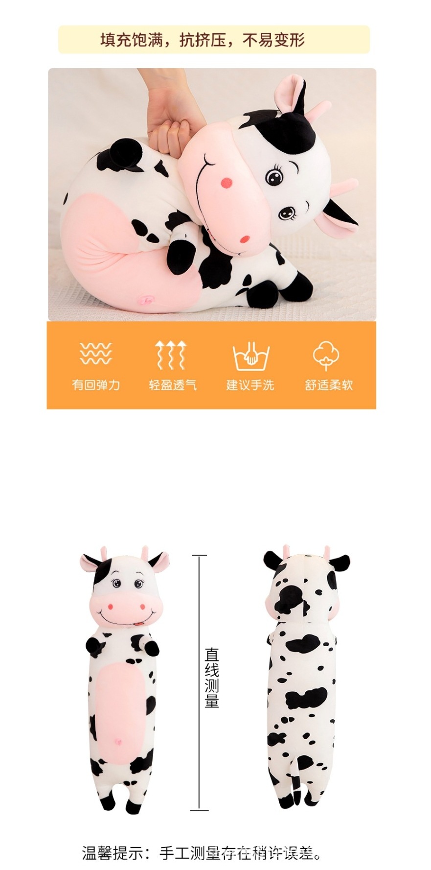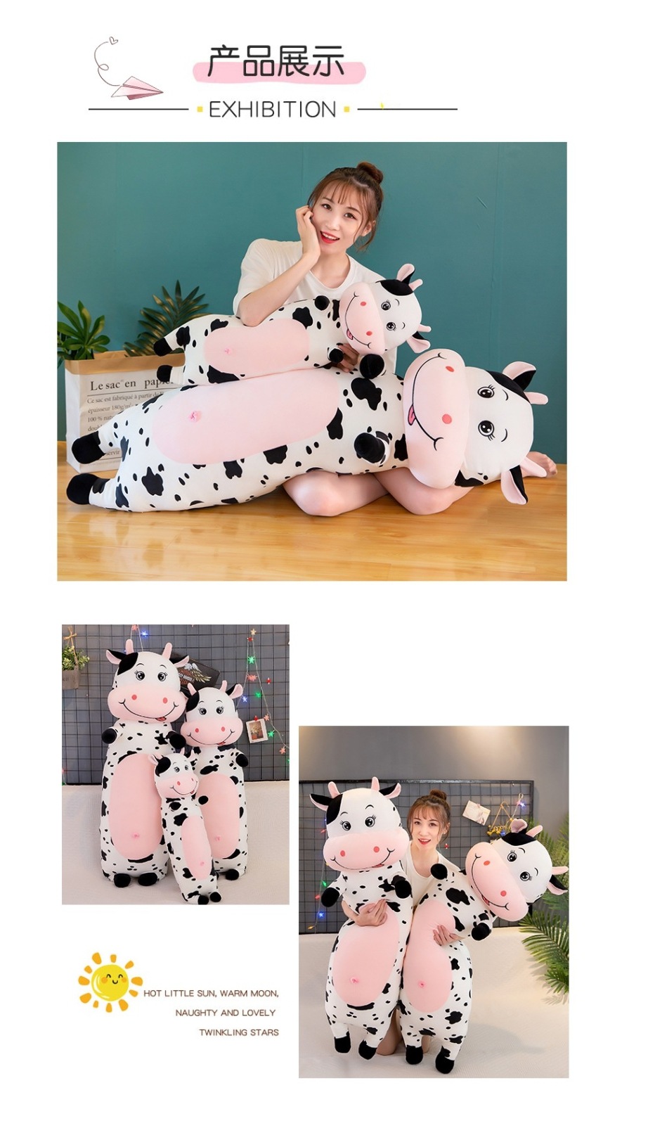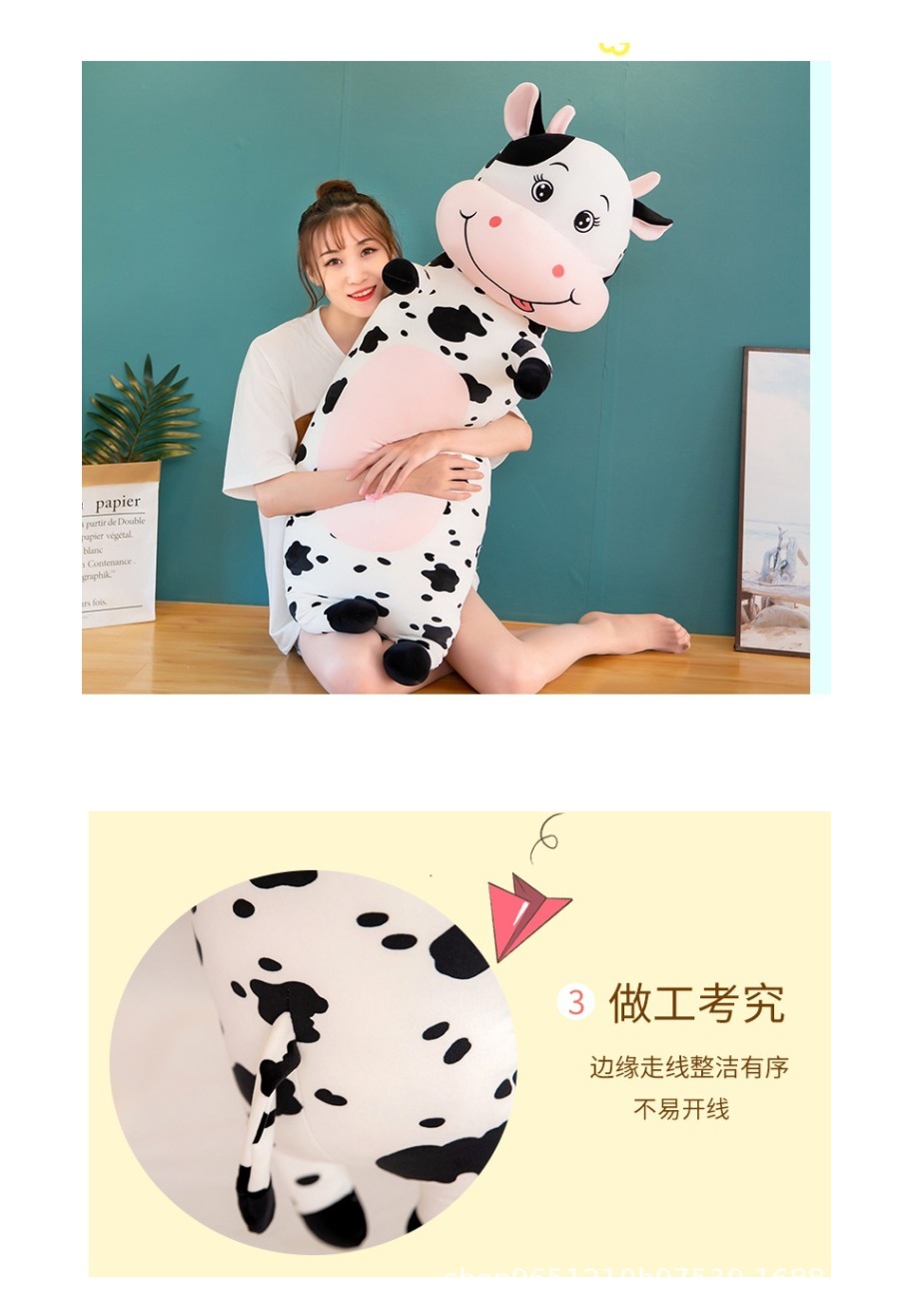 かわいい斑点の乳牛のぬいぐるみの大きいサイズのぬいぐるみは寝ています。