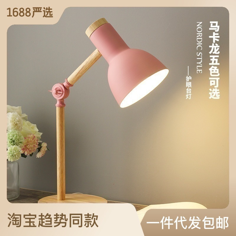 国aa級の目の電気スタンドの寝室の机の大学生の寮の簡単な寝室のベッドのヘッドライトのマカロンの木の電気スタンド