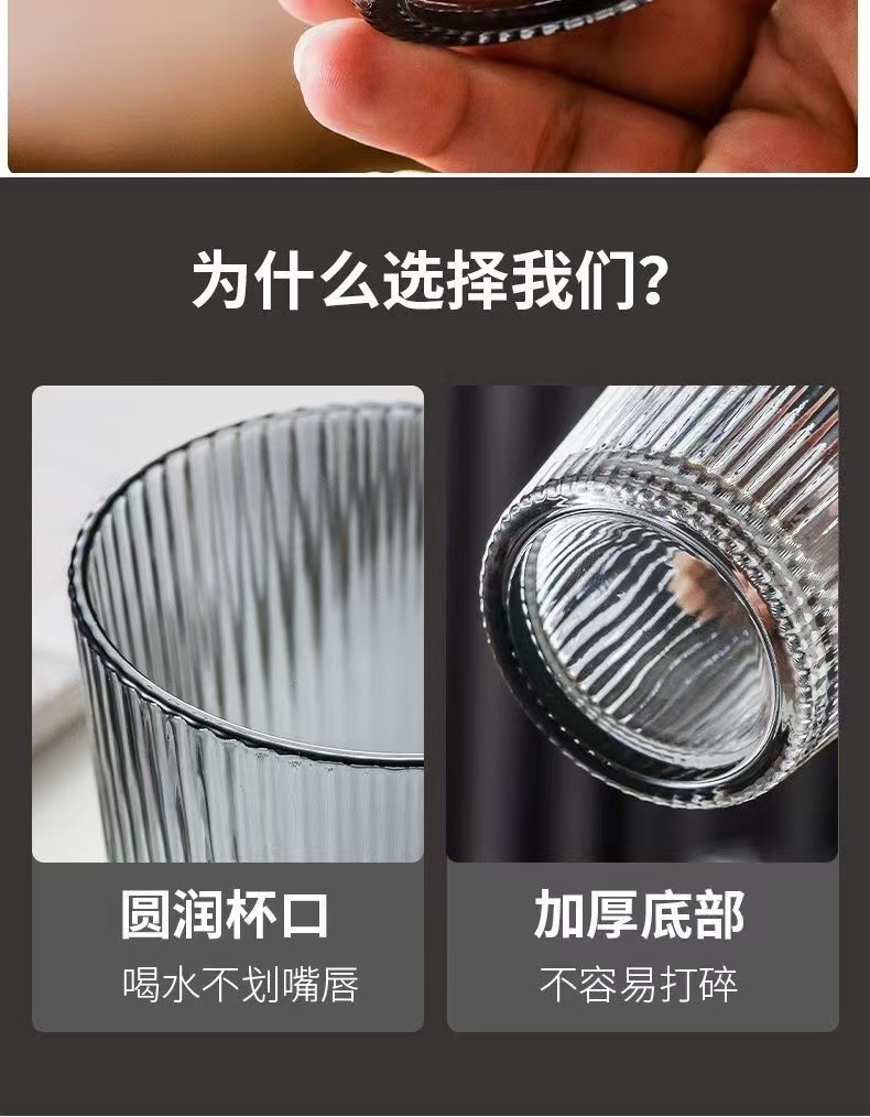 透明ガラス縦カップ,琥珀色のガラスの縦縞カップ,灰ガラス縦模様カップ