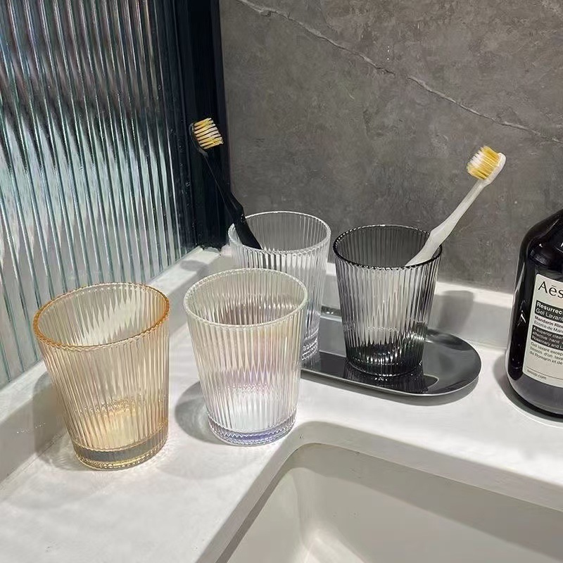 ヨーロッパ式insストライプガラスうがいカップホテルホテル洗面カップカップルの歯筒カップと歯ブラシカップセット