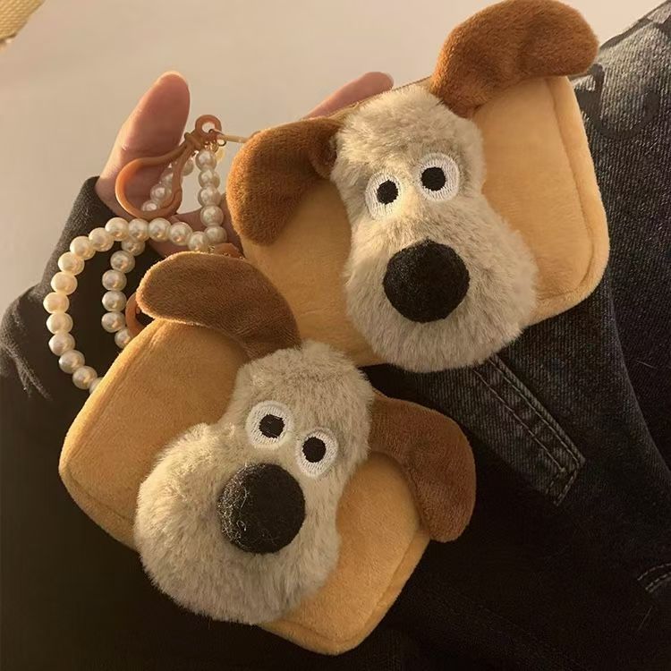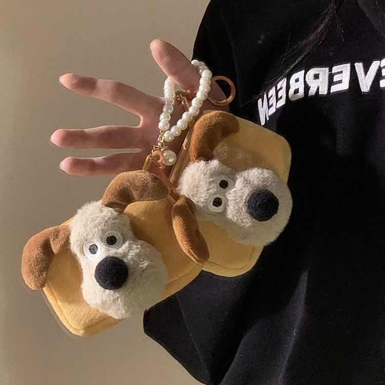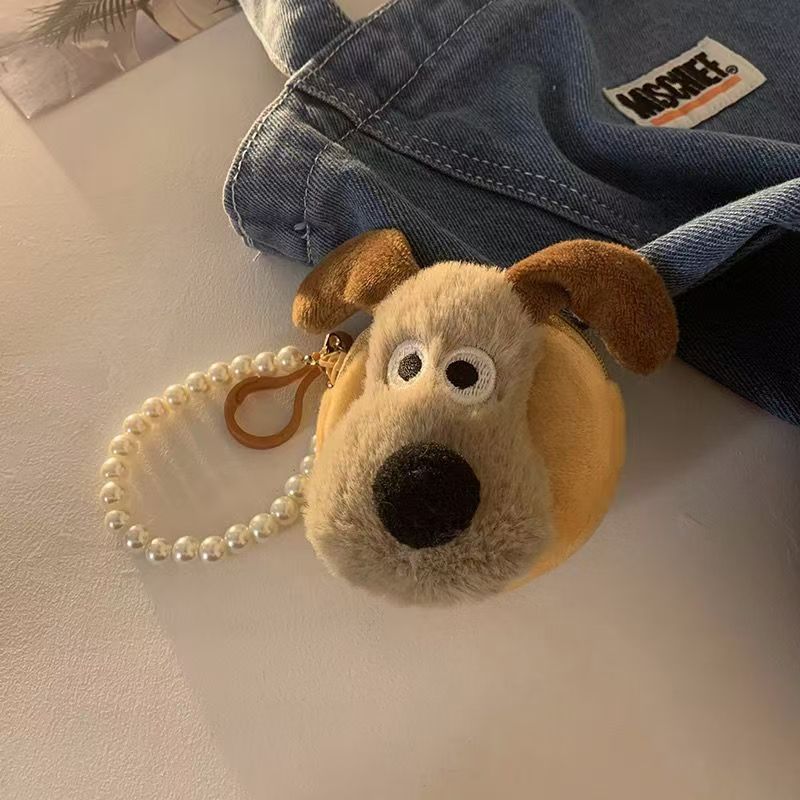 かわいい子犬のベルベットの小銭入れの女性のミニ小さな収納イヤホンのバッグの漫画のキーホルダーの学生のかばんのストラップ