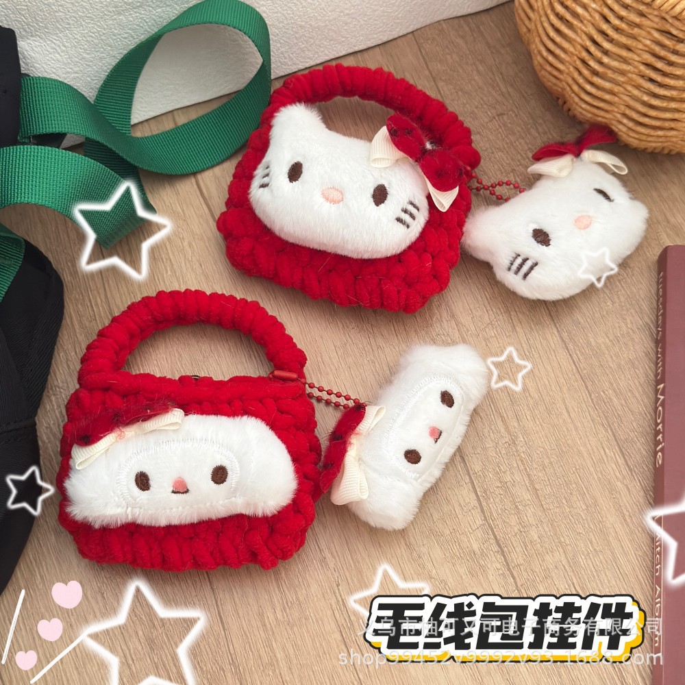 毛绒卡通三丽鸥KT毛线包可爱挂件零钱包手工编织零钱收纳包批发