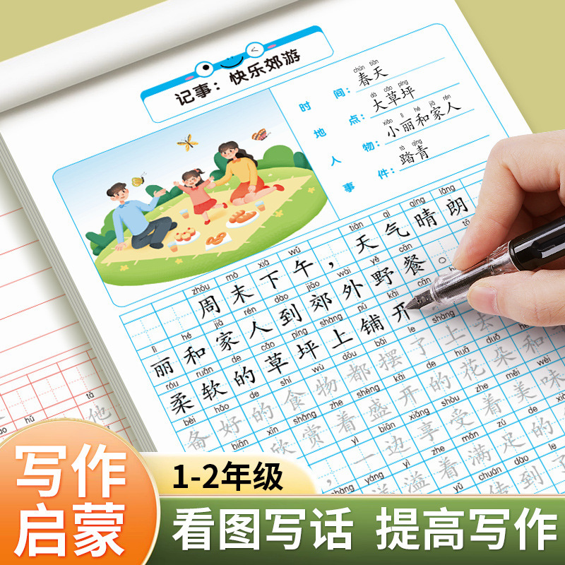 図を見て話を書いてください。一年生二年生は字を練習します。