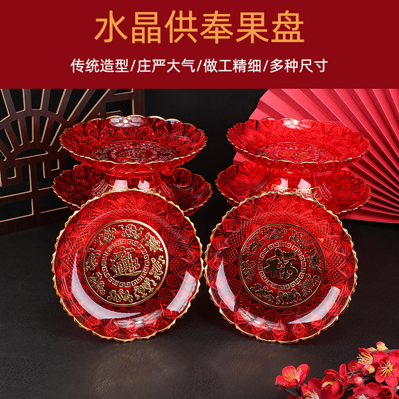 家用供盘供佛水果盘佛前高脚果盘塑料盘红色托盘拜神供品盘
