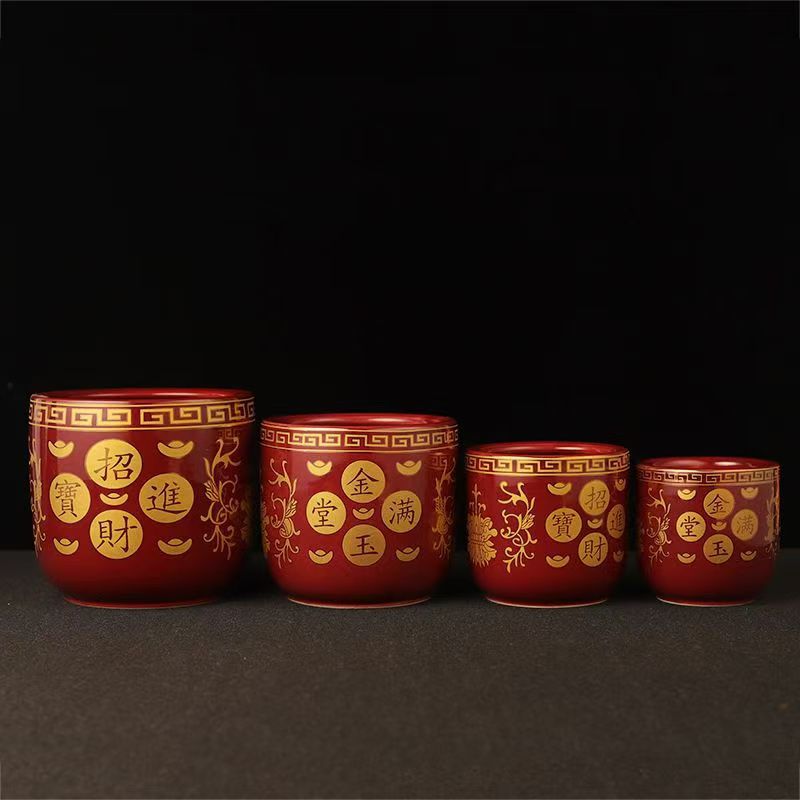 朱紅直身香炉は礼仏陶磁器香薫炉のトランペット招財香炉仏堂焼香炉仏具用品を供えています。