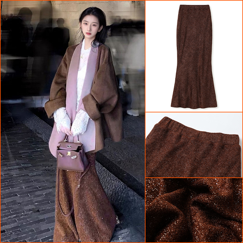 2025秋冬新作 国風デザイン感あふれる金箔加工の厚手フィッシュテールスカート 気品漂う新中式スカート レディース MY058