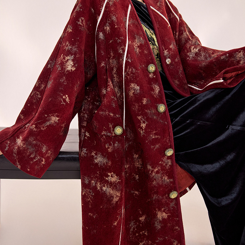 新中式冬新作刺繍入りゆったり着痩せ傘型デザイン民族風ミドル丈コート女性用 ZX型MY034