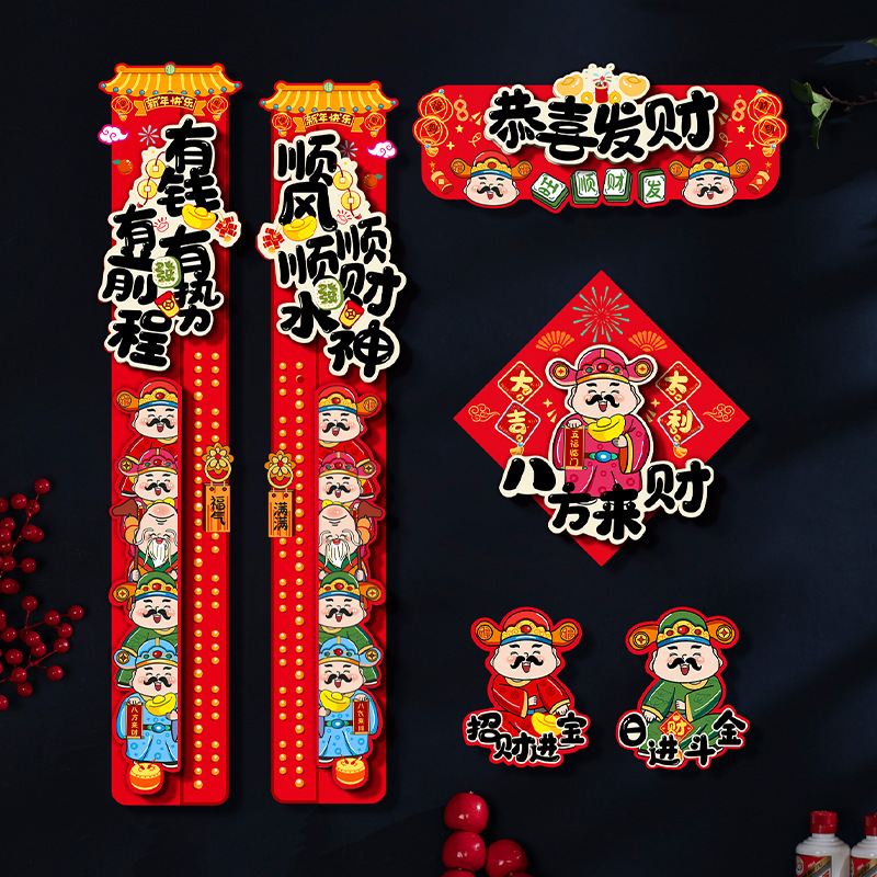バーガンディ植毛立体カラーカード新年対句(完成品にはフックと接着剤が付属します)