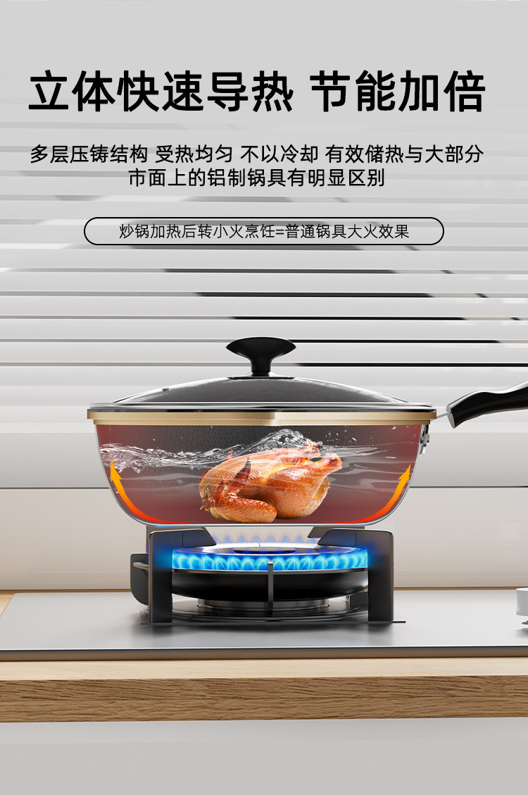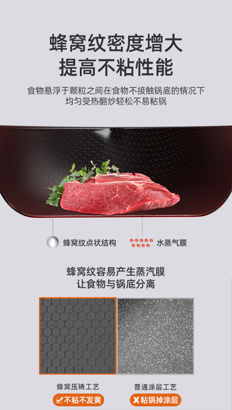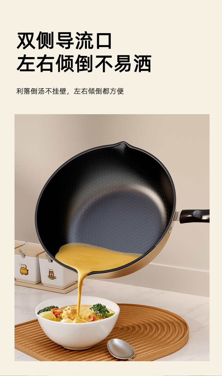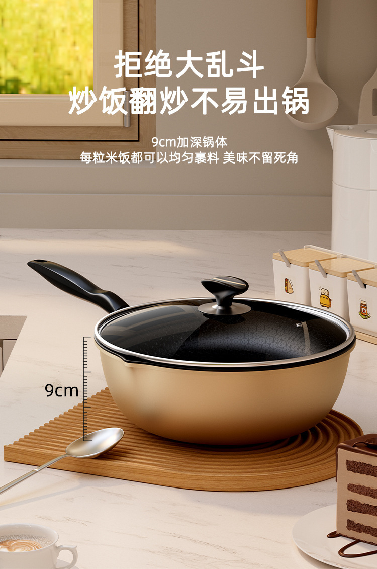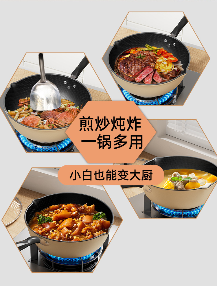 新しいハニカムパターンノンスティックパン多機能鉄鍋家庭用調理鍋ダブルガイド中華鍋ユニバーサルストーブパン